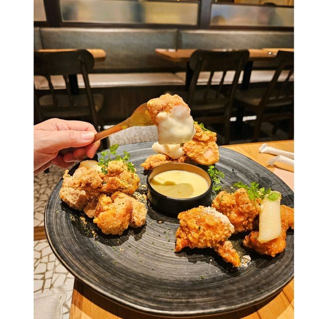 #Free lounge replacement on Member Day 27th of every month I went to the outlet in Tung Chung to have dinner on the way. I walked to the 3rd floor and saw the well-decorated Banchan & Cook facade. The seats inside were spacious, so I decided to eat this place! Once I opened the menu I saw a ''tasting package'' for 2 people, with snacks, main courses, desserts and drinks. Rice with Coriander Prawn Egg Wrap with Rosemary Sauce Beef brisket with meat sauce and egg bun rice 🍴The waiter impromptu cut the egg on the egg bun rice, the process healed; the bottom of the fried rice has carrots and green melon ingredients rich, folded the eggs together to eat the taste is great. Fried Chicken Platter (Original, Cheese, Honey Fried Chicken) 🍴Fried chicken is fried to order, it is still super hot when it arrives on the table, the outer layer is crispy, the chicken inside has rich juices, great! 🍴Fried chicken has 6 flavors to choose from, order this platter you can choose 3 flavors. The original taste of the chicken is the original taste, the cheese powder on the top is very suitable for cheese control, honey fried chicken is my favorite, it tastes sweet and goes well with the fried chicken. Dessert: Carrot Oreo Mousse Cake 🍴Potted-shaped dessert, good for taking pictures, the top layer of Oreo made like soil, the appearance has got full marks! 🥤 Caramel Crispy Fresh Milk Coffee 🥤 Green soda 🍴After eating, have a glass of iced drink of your choice, which is refreshing and refreshing. 📍Banchan & Cook (Tung Chung) ▫️▫️▫️▫️▫️▫️▫️▫️ #FoodGuide #FoodTour #Tung Chung Restaurant