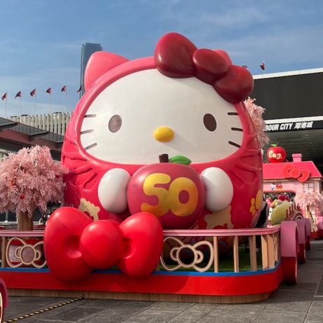 Hello Kitty turns 50 this year, and to celebrate, there's a large-scale Hello Kitty themed installation in Tsim Sha Tsui. There are plenty of photo spots for everyone to discover. First up is the eye-catching 5-meter tall Giant Daruma Hello Kitty. There's also a gashapon machine for everyone to get their own mini Daruma Hello Kitty. Additionally, the rooftop features a Lion Dance Hello Kitty against a stunning seascape backdrop. There's also a pop-up store and art exhibition selling a variety of limited-edition collectibles and artworks.