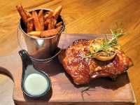 Address: Shop A & B, G/F, KOHO, 75 Hung To Road, Kwun Tong, Kowloon Transportation: 8 minutes walk from B2 exit of Kwun Tong MTR station. Business Hours: 11:00 - 21:00 Every time I pass by The Hunt during lunchtime, it's always bustling with people, so we chose to visit in the evening. Here's what we tried this time: 1. Mango Crabmeat Salad $88 (The mango chunks are very sweet, there's a generous amount of crabmeat, and the salad greens are very fresh.) 2. Turin Spicy Chicken Wings $68 (The chicken wings are slightly spicy.) 3. Roasted Sea Bass with Purple Sweet Potato $178 (The sea bass is very fragrant when roasted, and the purple sweet potato is delicious.) 4. Angus Ribeye Steak with Fries $258 (The steak is very tender and super tasty, a must-try.) 5. Roasted American BB Pork Ribs with Sweet Potato $168 (The pork ribs are very juicy and the meat is tender, a must-try.) 6. Burger King with Fries $168 (The burger is very chewy.) 7. Lobster Sauce Prawn Linguine $158 (The prawns are refreshing and bouncy, and the linguine with lobster sauce is very fragrant.) 8. Mango Mousse with Coconut Foam $68 (The presentation is super beautiful, the mango mousse is refreshing, and the coconut foam is unique, with coconut shreds inside, making the texture amazing.) 9. Double Chocolate Mousse $68 (A must-try for chocolate lovers.) 10. The Hunt's Signature Tiramisu $78 (The tiramisu is super tasty and not too sweet.) 11. Frozen Grape Coconut Agar $62 (This drink is very beautifully colored, with a rich coconut flavor.) 12. Frozen Refreshing Grapefruit Pineapple $56 (The grapefruit flavor is fragrant and pairs well with the refreshing pineapple.) 13. Frozen Honey Lime $48 Friendly Reminder: The restaurant's name and menu are only in English, but luckily, the staff can speak Cantonese 🤣.