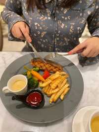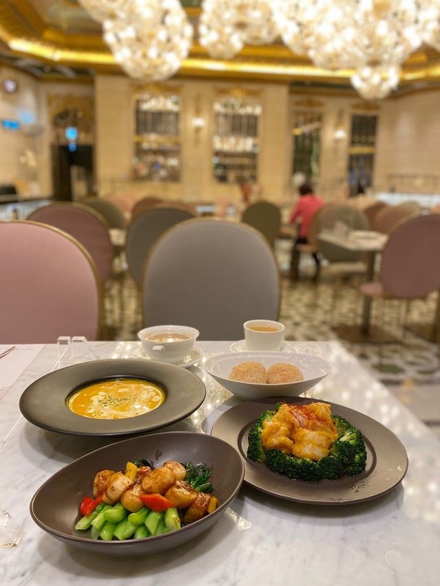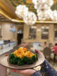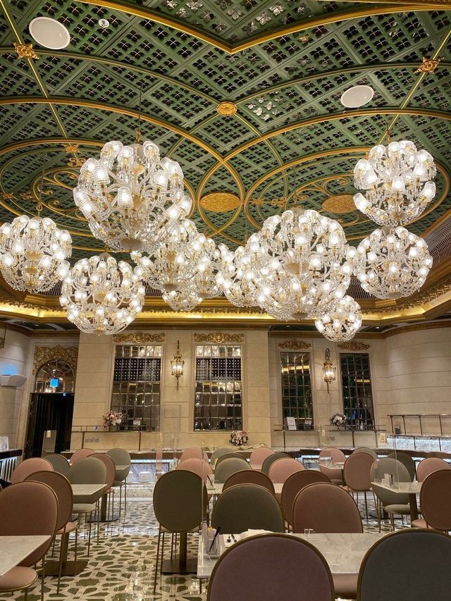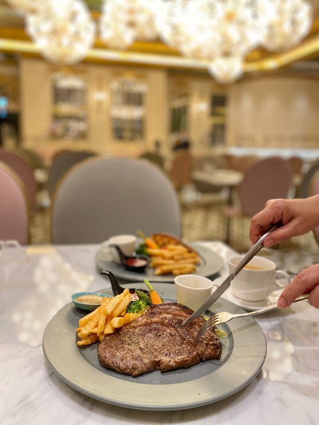 The Alexandra Hotel has just opened for two months. After seeing the dreamy check-in photos online, I couldn’t wait to check it out. The restaurant is magnificent and beautifully decorated, with a very high ceiling, gorgeous crystal chandeliers, and gold-carved mirrors, making it feel like you are in a medieval European palace. I really wanted to have a semi-buffet lunch, which included a main course of my choice, as well as a wide selection of appetizers, seafood, sashimi and desserts. However, the meal was already over at 2:30, so I decided to try the Á La Carte Menu first, which was equally exciting. The thick rib-eye steak is cooked to 70% done, with dark brown net-like patterns on the surface and a pink and tender interior, making you fall in love with the feeling of eating meat. It is soft and sticky when eaten, and paired with black truffle mushroom sauce, the meat is more delicate and tender, and the rich aroma of the gravy is doubled, which is very attractive. The French fries are thick and dense, fried until crispy, and the more you eat them, the more delicious they are. Green Egg Yolk Shrimp Balls The golden shrimp balls are perfectly wrapped in the evil salted egg yolk, which is chewy and refreshing, with an alluring salty and fragrant taste. The taste is moist and you will want to lick the egg yolk on your lips! The broccoli served as a side dish can reduce the greasiness, making it a golden combination. #Hotels to visit #Great places to visit in the suburbs