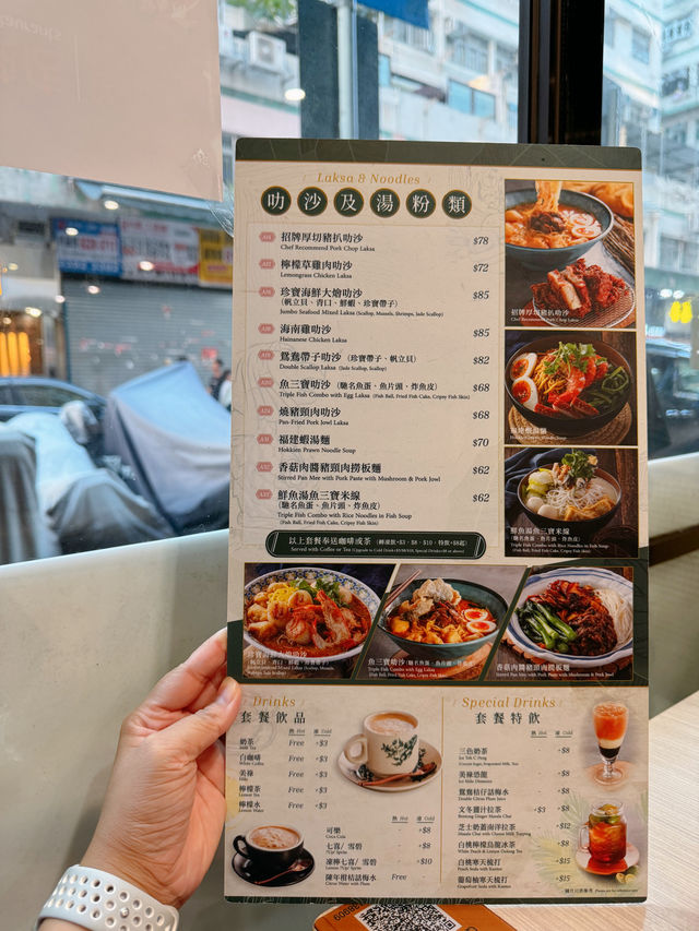 Fei Fei once recommended this affordable Taiwanese restaurant in Tai Kok Tsui. The signature thick-cut pork chop is what I remember most fondly. 👦🏻 I'd sometimes sneak in a bite alone. The restaurant closed for renovations a while ago, so I'll give it a try after it reopens. ▫️Signature Thick-Cut Pork Chop Laksa $78 The signature dish remains thick and generously cut, each pork chop covered in fat and fat. The pork chop is lightly battered, giving it a crispy texture. The meat is tender, but lacks juiciness. The laksa is quite rich, and even though 👧🏽 was sick that day and had a poor palate, I could still taste it. It wasn't as thick as I'd expected, but thankfully the two noodle bases were quite juicy. ▪️Bak Kut Teh (Pepper Flavor) $88 This isn't traditional herbal bak kut teh! It's like clear broth with pepper, lacking in flavor. The pork ribs were tender but not overly seasoned. They came with chili black soy sauce, rapeseed oil, rice, and a few fried dough sticks. ▫️Kaya Toast $30 The toast was crispy and had a subtle coconut aroma, but overall, the kaya sauce and butter were quite skimpy, and the photo and the actual dish differed significantly. ▪️ Three-Color Milk Tea $8 The set meal came with black Mala palm sugar, white black and white flower milk, and brown sirloin black tea. The sweetness was quite strong, overpowering the milk and tea flavors. ▫️Bentong Ginger Milk Tea $8 The ginger and milk flavors were strong, but the tea flavor was lacking. This visit was definitely a step down from my previous one. I was disappointed with both the signature pork chop and other dishes. According to unofficial statistics, most traditional, good restaurants deteriorate significantly after renovations. #RegisterAugustHotelTester #NanshanHotel #Nan'aoHotel #foodphotography #HongKongFood #Sin ChewChef
