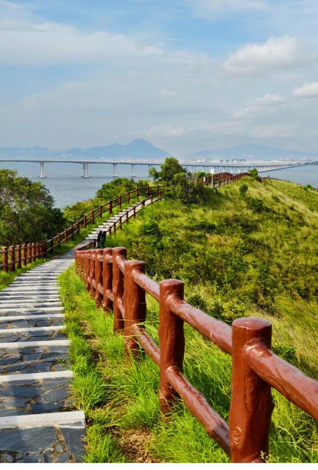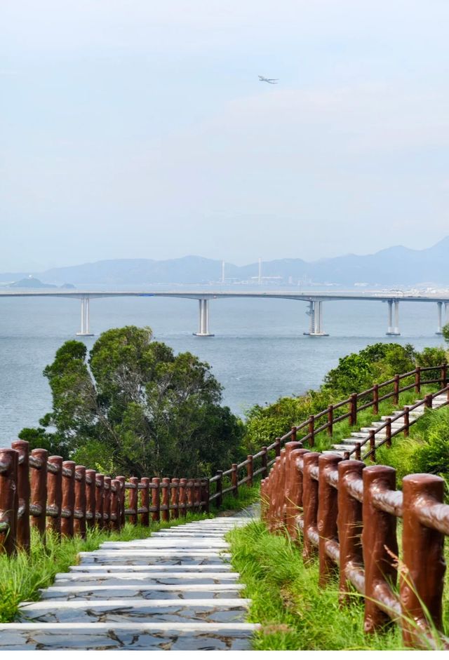 I went to Hong Kong's Tai O fishing village. It is different from other outlying islands. There are rows of unique floating stilt houses and a bustling street market. I heard that if you are lucky, you can see dolphins. Climb up to the Tiger Hill Observation Deck and you can see the sea view. The scenery of this niche observation deck is really wow: you can see the Hong Kong-Zhuhai-Macao Bridge up close There is a plane flying by every few minutes at the nearby airport, so you can take photos of them in the same frame. The extended trail seems to lead to the sea, and it is very photogenic. According to the sign, you can reach the top of the mountain in ten minutes from the Shaolin Martial Arts Center, with a wide view and unparalleled sea views. !!The top of the mountain is a very beautiful hiking trail, but the exception side is similar to Beizai Cape, you know, it is recommended that you go up the mountain in groups and go down before dark. - Transportation Tips ①Tung Chung, take bus No. 11 to the last stop, Tai O ②Take a boat from Tuen Mun Pier/Tung Chung Pier. There are fewer flights, so check the time in advance.