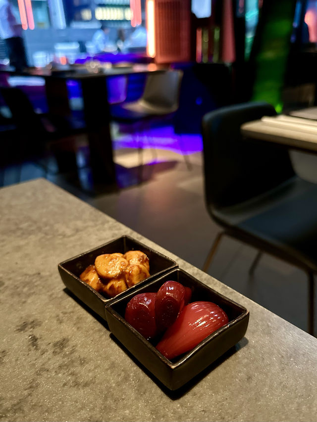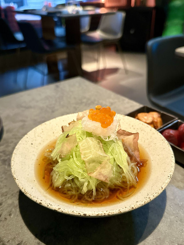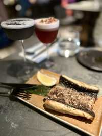 There is a new Japanese bar and restaurant AOAO in Central Convenient location and very chill decor😉 🌟Sour Time / L’incomparable $118/$148 I ordered two cocktails Sour time uses bamboo charcoal as the theme, the whole cup is super stylish in black😎 And L’incomparable has a very grape aroma, sweet and easy to enter😚 🌟Akagai $138 The red mussels are like spring roll skins wrapped in asparagus and onions I also added a little chili sauce to match it very fresh and suitable for appetizers😝 🌟Shredded Celtuce Salad $68 Cut asparagus into strips like noodles 🍝 The seawater flavor of salmon caviar is immediately richer🌊 🌟Caramelised Pumpkin $88 This pumpkin is amazing The caramel on the outer layer is burnt crispy🎃 The pumpkin in the middle keeps the ingredients sweet There are also some crispy pumpkin seeds to serve 🌟Charcoal Grilled Eel $288 This can be said to be the shop's trick dish. Many tables have ordered it The shopkeeper will take a piece of heated charcoal and put it on the eel and grill it on the spot The eel is full of charcoal flavor and still very firm and oily, with no small bones Enjoyment with all five senses😎 🌟A4 Wagyu Cutlet Charcoal Sando $328 Black carbon bread sandwiched with A4 fried wagyu beef🥪 A4 Wagyu beef is fried to medium crispy on the outside and soft on the inside The wagyu beef in the middle has a rich oily aroma, and it still has a little melting feeling in your mouth🤤 🌟Double Fromage Cheesecake / Red Bean Daifuku $68/$68 After the main meal, I ordered dessert🍰 The taste plays normally The restaurant's dishes are exquisitely presented and the combination of dishes is very creative The atmosphere and decoration are very good 👍🏻 There is also a bar table location and outdoor seating even if you are not here to eat just have two drinks is quite good🥂 📍AOAO (Central) 14/F, Wan Nien Building, 38 Queen's Avenue Central, Central #SpecialtyFood #100 Ways to Travel