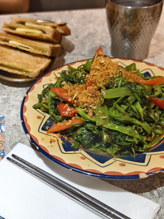 Lee style Hainanese chicken rice with laksa $108 Singapore white pepper bak kut teh $92 Sautéed water spinach with sambal sauce $72 Pandan curd toast $28 Taste index: 😋😋😋😋😋 Value for money index: 💲💲💲💲💲 Environment comfort: 😌😌😌😌 Environment hygiene: 🧹🧹🧹🧹🧹 Service quality: 💁🏼♀️ 💁🏼♀️ 💁🏼♀️ 💁🏼♀️ One day I went to Sheung Wan and saw that this Singapore restaurant was quite popular. Take a look at the menu, the price is not expensive and there are many food choices. The restaurant is decorated in a Southeast Asian style, with rattan furniture, walls painted with broad-leaved plants, and cabinets made of warm-toned wood. We ordered 4 dishes. Lee style Hainanese chicken rice and laksa is a great combination as you can try two must-try staple foods in Singapore at the same time. Hainan chicken has smooth skin, tender meat and not too much fat. According to the traditional method, it is served with minced ginger, chili sauce and dark soy sauce. The oily rice is fragrant, the grains are distinct, and it is neither too dry nor too soggy. The laksa has a strong coconut flavor and is served with rice noodles. It's just a small bowl, but it has shrimps, tofu, eggs, fish balls, and shallots. What I appreciate most is that the egg yolk is semi-runny rather than fully cooked. Singapore White Pepper Bak Kut Teh is flavourful but not too peppery. There was quite a lot of ingredients, including multiple chops, pork belly and whole garlic 🧄. The water spinach fried with sambal sauce is stir-fried as ordered and has a strong wok flavor. Sambal is an important condiment in Singapore, spicy and stimulating. The pandan curry toast is made with 4 slices of bread and divided into four pieces. Each piece of toast is baked to a crispy texture without any burnt taste. Each piece is sandwiched with a big piece of butter🧈 and rich and smooth kaya sauce, with moderate sweetness. Overall the food quality is good and the price is not expensive. I will definitely come back with my colleagues during lunch time. —— LeeLaksa 📬Ground Floor, 302 Queen's Road Central, Sheung Wan #Hainanese Chicken Rice #Laksa #Singapore White Pepper Bak Kut Teh #Pandan Kaya Toast #Sambal Water Spinach
