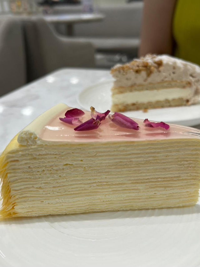 #HongKongTravel LADY M 🍰 Legendary crepe cake shop with many branches in Hong Kong. This time, I tried both the IFC Mall and Hong Kong International Airport branches. There are many flavors to choose from. Recommended flavor: Green Tea Mille Crepes 🍵 Soft and smooth cake, slightly sweet, soft cream, fragrant with matcha, very delicious. Rose Mille Crepes 🥀 Original flavor crepe cake with rose jelly on top, fragrant, delicious, sour and sweet. Earl Grey Mille Crepes 🫖 Well-rounded flavor, slightly fragrant with tea, but delicious when eaten together. Tiramisu Mille Crepes ☕️ Soft crepe cake with light dough alternating layers with soft fresh cream, fragrant with coffee, distinct tiramisu flavor.