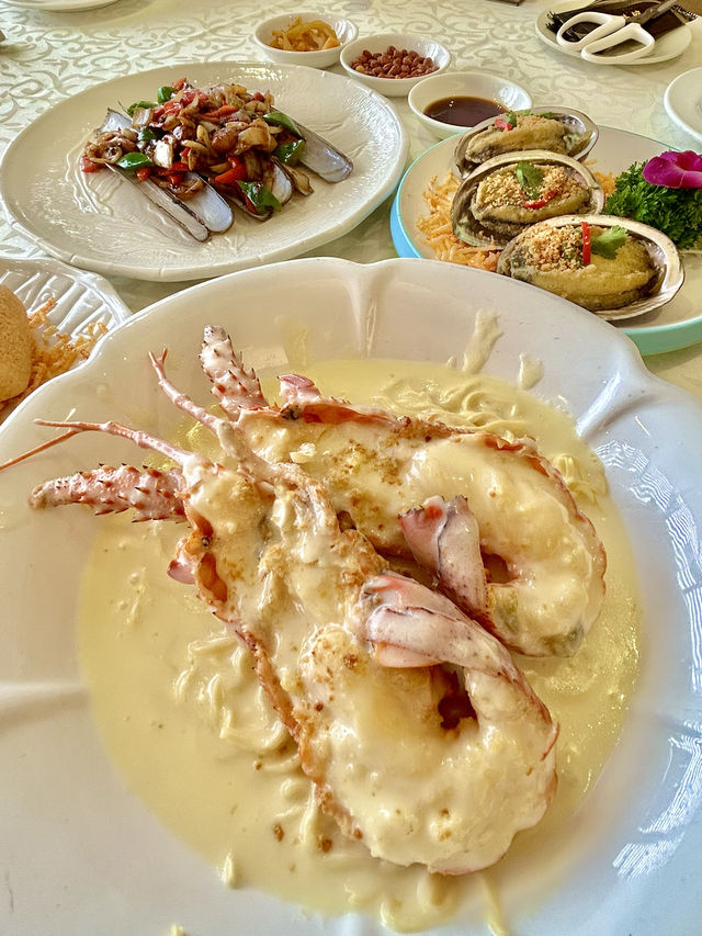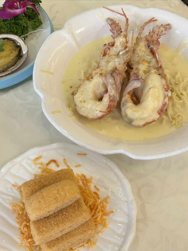 Ahhhhhhhhhhhh it's near UST There is such delicious seafood😭😭 Who said we don’t have good food to eat in Sai Kung Village? It’s worthy of being awarded one Michelin star for more than ten consecutive years🌟 It’s so delicious that I can’t even eat it! ! ! ! ! Just next to the seafood market pier Smell the smell of the sea, the catch of the day is particularly fresh ✅I highly recommend this salt and pepper baked abalone Huge, huge, delicious! So big, only as big as a palm The fried salt and pepper is sprinkled on the noodles to a crispy texture, and is brought into the mouth together with the chewy abalone. The aftertaste is really no exaggeration! And its seasoning is different from the usual salt and pepper, it’s more crispy! ps. Their salt and pepper tofu is also good ✅Lobster in soup with noodles🦞The huge lobster has elastic meat. After serving, we will help you cut it open for easier eating~The cream sauce is mixed with the shrimp oil exuded from the lobster, and the noodles are super appetizing! ✅The Bamboo Clam King with Black Bean Pepper is super fragrant as soon as it’s served! Stir-fried black pepper is not only beautiful but also nutritious and delicious😋 And the service is super nice It made the uncles and aunts very happy hh I feel like they are regulars The environment is also good, warm and open 🦞Luk Fook Restaurant 📍Shop G/F, No. 49 Market Street, Sai Kung, Hong Kong