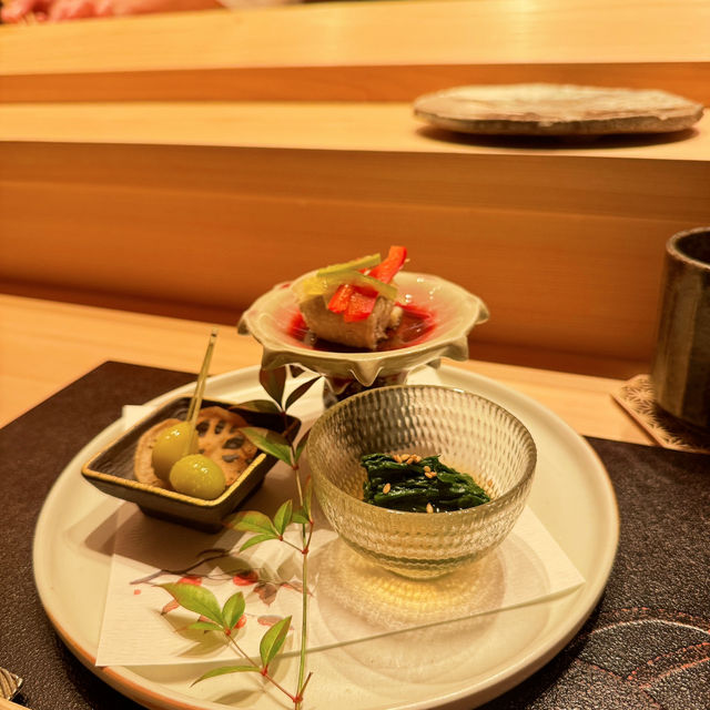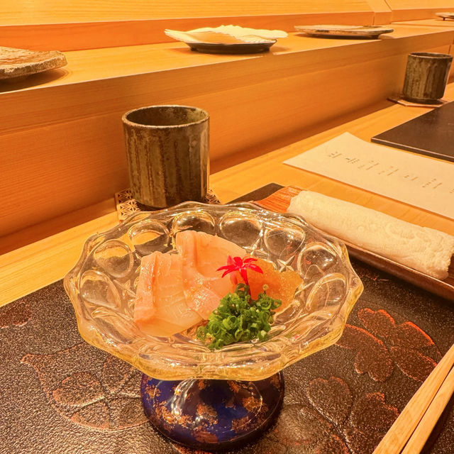 When eating omakase in autumn, the most seasonal is squid! This time I came to this place for dinner with my friends😌 This is more special, its sushi and sashimi will be mixed together😌 ✨Pay 3 points in advance Ginkgo skewers with fried lotus root, spring chrysanthemum, and spring fish The master first presented appetizers made with seasonal ingredients, which opened up our taste buds😚 Burdock, yam, sour ginger - pickles were made quite well ✨Sashimi Shek Mun bream with grapefruit and carrot puree Sauce roll with pickled carrots, onions and basil leaves Straw smoked sturgeon with onion soy sauce Hokkaido water octopus with wasabi and grapefruit pepper The sashimi is quite fresh and the sauces are paired with it The master also showed us his whole octopus leg😆 ✨ Pond Fish - Start your sushi journey with light fish Northern scallops - very fresh 😋 Akari - There is light charcoal grilled over the fish skin very fragrant! Qinghai Lao - very bouncy meat Medium tow - grease just right Big Toro - melts in your mouth Hokkaido horse manure seaweed - is the taste of bliss Sea bass - very sadly, the last sushi of the night ✨ Grilled food Grapefruit Miso Grilled Tako - The fish flavor is very good😌 ✨Tamako - It's like eating cake😙 ✨Soup Pond fish miso soup - not too salty, good drink! ✨Dessert Sun King Cat's Eye Plum Liquor Jelly - Dessert is fresher, good😚 📍Address: Sushi Yangtai Shop G111, G/F, Harbor City Harbor Plaza, 3-27 Canton Road, Tsim Sha Tsui #HongKongFood