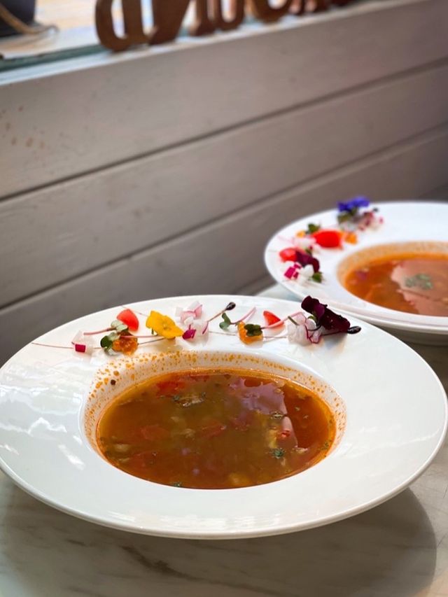 A few days ago, I went to this small Western shop in Sai Ying Pun with my boyfriend for lunch💙🤍 Once I saw the blue and white design of the exterior wall outside the store, full of European style decoration, already very like 🥰 have a feeling of traveling to Nordic 🇫🇮🇳🇴 The decoration in the store is very exquisite, there are all kinds of dried flowers, European tiles, extremely igable, perfect for girls to take pictures📸😍 We ordered the 3 Course Lunch Set, which includes soup + main course + flower tea 💕 🔹Tomato Beef Mixed Vegetable Soup The soup is so thoughtful, plus points 😛 The tomato flavor is very rich, and there are a lot of tomatoes and minced beef 🍎 sweet and sour and very appetizing! It's a rare high-quality soup🤩 🔹Secret Chicken Chop Caramel Pineapple Bamboo Charcoal Burger • Crispy French Fries $178 This burger is full of ingredients. It's satisfying for two people to share! The chicken steak is tender, with a secret sauce, very tasty ❤️ Pineapple has been grilled, sweet enough and juicy 😆 Together, the taste is very rich, not greasy at all! Also the fries were crispy enough! Recommended 😍😍😍 🔹Onsen Egg Mentaiko Seaweed Pasta $198 This is my favorite combination ❤️ The pasta tastes good, every bite you can eat the rich seaweed and mint flavor, and add the spring egg 🤤 This combination is evil ~ recommended to share 💖 🔹Latte (Additional $10) I ordered a cup of coffee to refresh myself ☕️ The coffee is rich, the foam is smooth ~ satisfied! 🔹 Roselle black wolfberry tea My boyfriend ordered this cup. It tastes sweet and sour, and is good for relieving thirst! 🔹Assorted Berry Italian Cream (Additional $38) Although I was full until the end, I couldn't help but share a dessert🍮 It looks so exquisite😍 It looks like a potted plant🪴 The top layer is covered with lots of raspberries and lots of oreo crumbs The bottom layer is milk ice cream is very smooth and feels very rich with a rich milk flavor and not too sweet😚 I think the upper and lower layers work well together to balance the sweetness without being too heavy I will give high-scoring desserts☺️✨✨ 📍 The Ground Kitchen G/F, 47 Shui Street, Sai Ying Pun, Western District #hkfoodie #hkfoodielife #hkfoodblogger #hkigfoodie #hkiger #thegroundkitchen #yummy #hkcafe #hkrestaurant #foodphotography #foodpics #foodstagram #foodlover #burger #foodshare #cameraeatsfirst #foodielife #photofood #starwriters rush rush