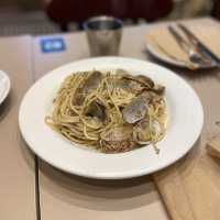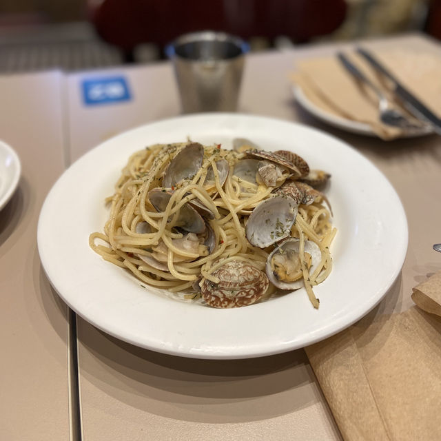 We were exhausted from strolling around Tsuen Wan 😮💨 We suddenly felt like eating Western food; we hadn't had pasta in ages 🍝 So we went to Euro Go Go in Tsuen Wan Green Square for dinner. Euro Go Go is a European-style light meal cafe with a semi-self-service, open-style design. They offer a variety of baked-to-order thin-crust pizzas, delicious pasta, savory snacks, a variety of desserts, coffee, and more 😋 I personally loved their "🧄 Garlic Clam Spaghetti," "🍗 Honey Chicken Wings," and "🐮 Garlic Salt-Baked Ox Tongue." The pasta was perfectly al dente, the herbs and garlic oil were incredibly fragrant, and the clams were generous. The honey chicken wings were large and generously coated in honey. They were sweet but not too dry, and very flavorful. The ox tongue was tender and full of beef flavor. Served with garlic slices, it's incredibly flavorful! ☺️ I personally think this is a great alternative to fast food. It's perfect for both gatherings with friends and solo dining. The prices are reasonable, and the dining environment is relaxed and comfortable. 😌 The staff are very friendly and worth a try. 👍🏻 —————————- 🍽️euro go go (Tsuen Wan Branch) ⏰Opening Hours: 7:15 AM - 11:00 PM Daily 🏠Address: Shop S31-32, 2/F, Luk Yeung Square, 22-66 Wai Tsuen Road, Tsuen Wan 💰Per Person: $51-100 🚘Transportation: Walk from Exit C of Tsuen Wan MTR Station #Sign Up for December Hotel Tester #travel#travel#touristattractions#travelguide#globaltravel#100waystotravel#travelinspiration#travelstrategy#traveltourism#traveltips#cooltravelexperiences#travelplaces#tripsharing#foodiehk#food#foodieguide#foodietour#hongkongfood#dinner#hongkongplaces#hongkongfoodguide#hongkong#hongkongfoodrecommendations#continental#westernfood