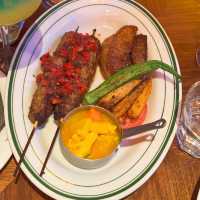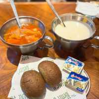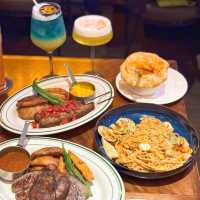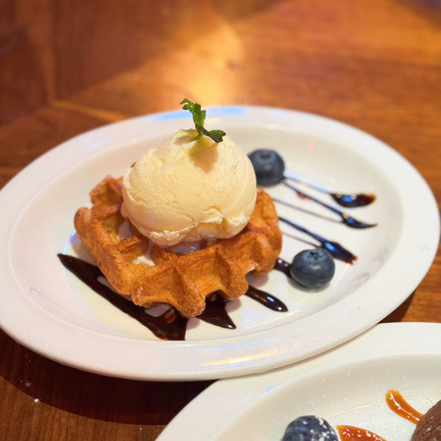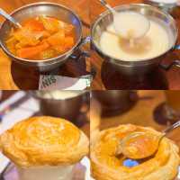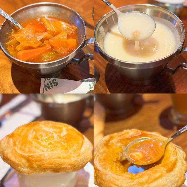 Last week I went to a friend's house in the Northern District to play 🎉 At night, I went to the neighborhood shop "Bidao Restaurant" for dinner. The decorations here are very Christmassy, ​​very lively and energetic🧑🎄! The food here is super big, it's really cheap😋 🥖 Soup, baked bread Every main course here comes with soup and bread. In addition to choosing borscht or cream soup, you can also upgrade to pastry lobster soup🦞, very creamy, and shrimp meat! 🥟 Water-fried dumplings ($59) For a snack, I ordered a dumpling, which is full of corn and pork. It's really thin and filling😍 🐚 French Baked Snails ($69/half dozen) The baked snails with mashed potatoes are so fragrant and creamy😋 🍖Thick Beef Ribs ($229) We chose the beef ribs from the chef's recommended menu here. It's super large and has a lot of meat😍 The meat is moderately fat and lean, very tender and fragrant, and there are several sauces to choose from🥰 🥩 Australian M5 Wagyu Sirloin ($335) We also ordered a 50% cooked recommended steak: M5 Wagyu Broiler 😍 This broiler is very big and thick, but still fresh and tender☺️ We also added a very juicy brown mushroom! 🍢 Middle Eastern Grilled Beef Skewers ($179) The beef skewers are made from hand-beaten beef. They are full of meat and served with Middle Eastern-style sauce. It's very appetizing🤤 🍝 Seafood Pasta in Lobster Sauce ($129) Spaghetti with lobster sauce is one of the chef's recommended dishes here. Each spaghetti is dipped in lobster sauce, full of savory flavor 😝 And there are many seafood ingredients 🦞 🍫 Chocolate Tart with Ice Cream ($49) 🧇Baked Belgian Waffles with Ice Cream ($39) For dessert, we ordered super creamy chocolate tart and waffles ~ both served with ice cream, a happy blend of hot and cold 😋😚 🥂 Bar Hair Drill ($159@) The bartender here will ask the customers' preferences to prepare cocktails, and will also add different decorations for us to take pictures 😚 beautiful and good drink ~ 🍊Fruit of the Day Special ($39) 🍋Handmade Lemon Tea ($39) 🧋 Milk Cover Biluochun Green Tea ($29) In addition to beer and cocktails, there are many non-alcoholic drinks here, which are very sincere, beautiful and refreshing💕 The Bid-O restaurant 📍G/F, 22-26 Wa Fung Street, Fanling #Fanling Food #Sheung Shui Food