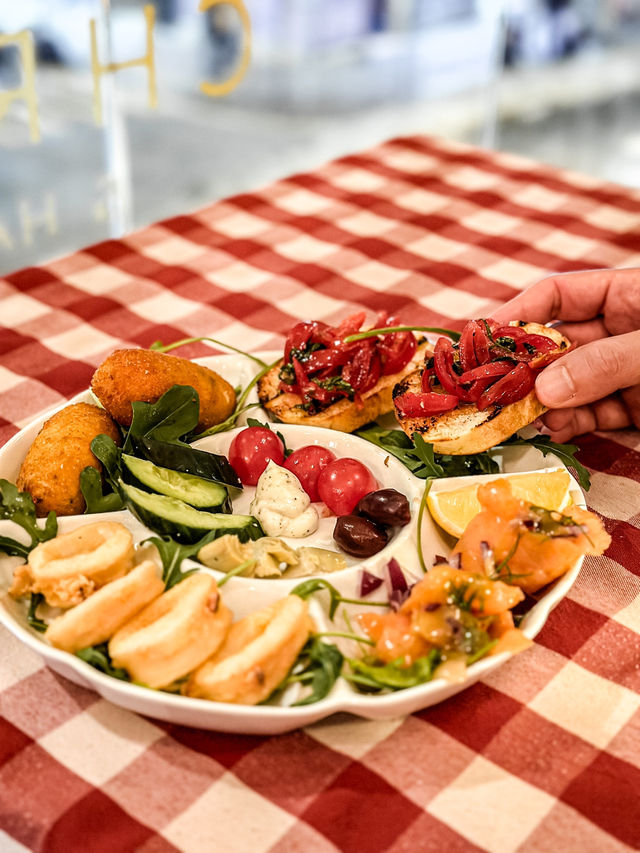 𓄳 𓄳 𓄳 To feel the festive atmosphere on Boxing Day, one would think of a diner in a small European town - the authentic family-style flavor, the warm and caring service and the delicious food. Pizzeria Italia in Kennedy Town is like this, so it is well-known in the area and has many regular customers. Pizza pasta set ($468/2ppl) 𓄔 MIX ANTIPASTI Fried fresh squid Homemade Chicken Croquettes Toasted Bread with Homemade Tomato Salsa Smoked salmon with capers, lemon and extra virgin olive oil Artichokes, olives and pimento on toast Five snacks, placed on a five-grid platter, have a very rich visual effect. It’s a very rich appetizer with salty, sour, fresh and meaty flavors and multiple levels of texture. 𓄔 Italia Pizza The combination of white mushrooms, sausage, pepperoni and green peppers is very delicious. The pizza base is soft and chewy, with a lot of cheese, it tastes especially soft and sticky. It is a must-order and recommended! 𓄔 Assorted seafood pasta with tomato sauce The seafood includes prawns, clams, squid, etc., paired with refreshing and chewy pasta and sweet and sour tomato sauce, which is both appetizing and delicious. 𓄔 Tiramisu This Tiramisu has a perfect balance of milk and wine, plus a strong coffee aroma, making it a perfect after-meal dessert. 𓄔 Aperol Spritz $88 Prosecco plus Aperol and soda, beautiful red and orange gradient, traditional, delicious and a must-try! This set menu also offers Espresso free flow, which is really good value for money. Through the restaurant's glass windows, you can watch the trams passing by, creating a warm atmosphere. The red and white checkered tablecloth and the unique Santa Claus decorations give this small restaurant a particularly strong Christmas atmosphere. The waiters are smiling and the service is attentive. This human touch alone is worth visiting again. 𓄳 𓄳 𓄳 📍G/F and 1/F, Golden Court, 144-148 Belcher's Street, Kennedy Town, Sai Wan