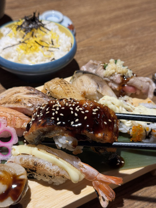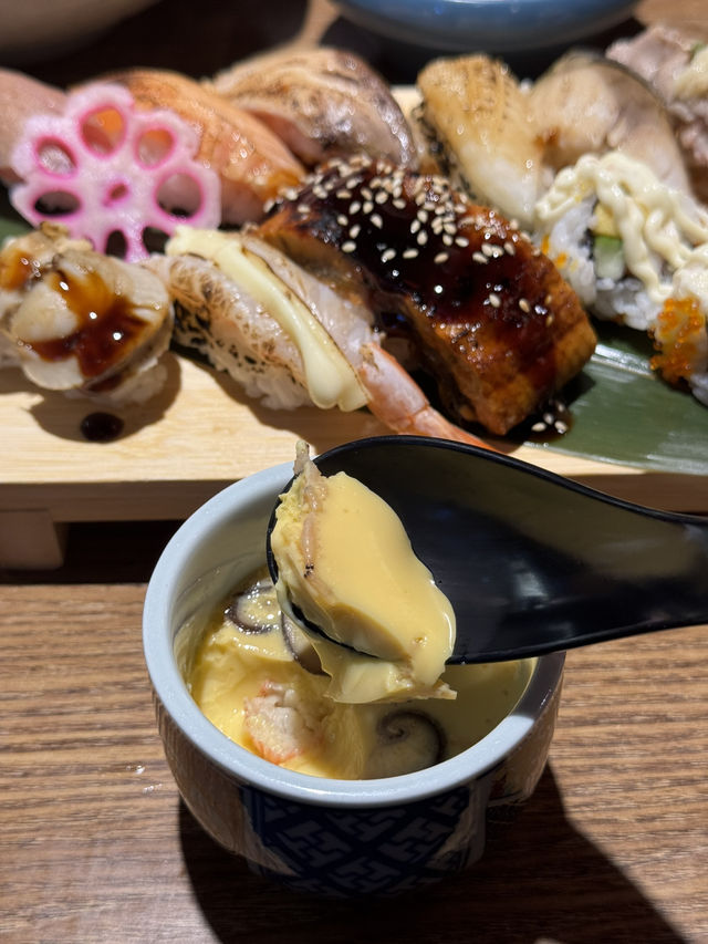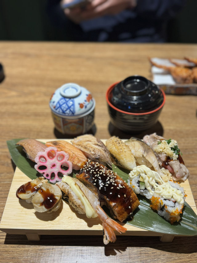 The ground floor of Tsuen Wan New Terrace Phase 2 has been renovated with many restaurants🍴. One of them is decorated in Japanese style, traditional Japanese lanterns🏮, and has a Japanese wooden menu. It's very thoughtful! In the open kitchen, you can also watch the sushi hand-held by the master, which is particularly fresh and rich in Eastern style. The menu is illustrated with pictures and texts, with salads, appetizers, fried foods, hand rolls, sushi, sashimi, fish donburi, and warship rolls. Sashimi set meal: beautifully presented, brightly colored. Salmon: Thick-cut salmon🍣 is rich in fat. Tuna: pink and tender in color, reddish, gluten-free, easy to bite. Octopus 🐙: Not very tough, but also with seawater microphone, quite tender. Hokkaido scallops: Very soft and glutinous, mild and sweet taste. True bream: The flesh of real bream is delicate and soft, and it is rich in "glycine" higher than salmon and salmon. Northern sashimi: fresh and sweet and refreshing, the mussels turn red when cooked, the mussels have thick flesh. Oily fish: The belly of oily fish is thick and tender, rich in gelatin, and evenly distributed in oil, which melts in your mouth. The meat is smooth and delicate, the flavor is fresh and sweet, and it tastes slightly sweet. Served with bean curd soup: there is kelp and bean curd skin, good, warm. Tea bowl steamed rice: with cherry shrimp, winter mushroom, lion dog and other ingredients, very rich. Salad vegetables: Served with sesame dressing fresh salad vegetables, fresh and crisp. Ultimate Grilled Sushi Set: Monster Salmon: Tender, pink, higher fat content for a richer mouthfeel. Monster Eel Sushi: Made with grilled eel with vinegar rice. The eel sushi was delicious. The richness of the eel complemented the sweet and sour taste of the vinegar rice. The eel was very thick, and the eel sauce was excellent. Grilled oily fish: the meat is smooth and delicate, the flavor is fresh and sweet, and it tastes slightly sweet. Tuna: The fish flavor is long-lasting, and you can eat it with a sweet taste Left mouth fish fish taste light, rich in oil, sweet fish oil will slowly seep, rich layers. Grilled beef: Fire grilled beef meat Beef fat overflowing lightly. Grilled cheese shrimp: The shrimp is very soft and glutinous, half-cooked with half-melted cheese🧀, delicious. The best part is to get unlimited self-rib toppings of brown rice tea, salad greens and fresh oranges. summary: Fresh hand-held rolls Very affordable sushi and sashimi set meal with tea bowl steamed bean curd soup