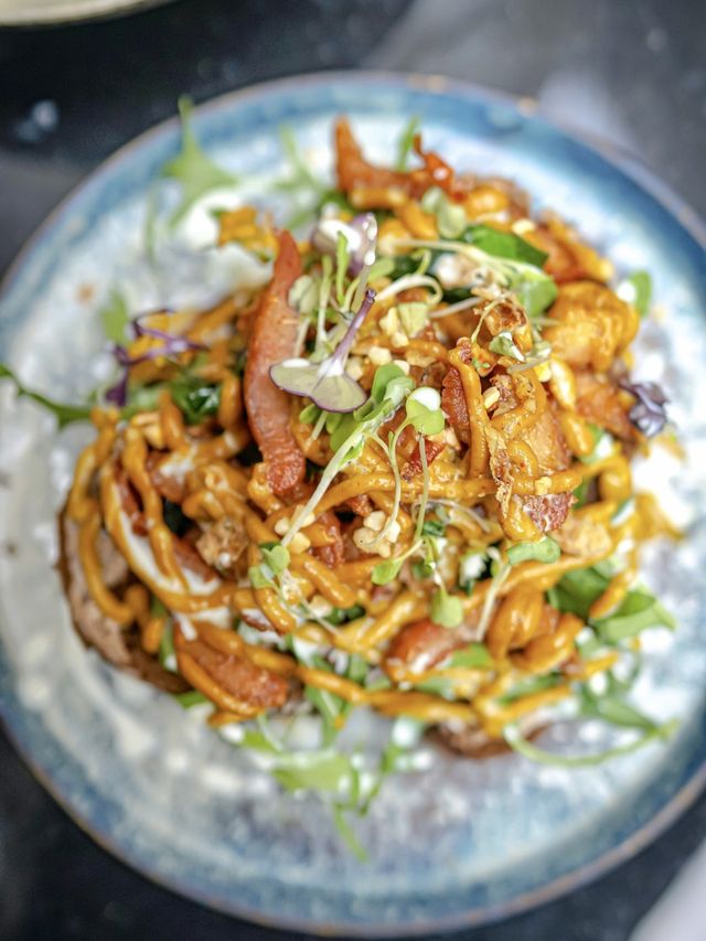 Restaurant: Ben (Kwun Tong) Address: Shop 509, 5/F, Toong Lee Centre, 52-54 Khai Yuen Road, Kwun Tong If you have been to @booncuisine in Kwun Tong, you should know that their sister store is also located in Kwun Tong Industrial Area - this @honbu_hk has just started the trial stage 🎉, with a retro face to bring a new Western fusion Menu to you 🍽 Named after the Japanese name "Honbu", which means "headquarters", I hope that while the epidemic is slowly improving, there is a base camp where we can gather together, reunite and enjoy the time of being able to "be together" and "eat good food"🥰. In addition to providing a variety of high-quality Western Fusion dishes like @booncuisine, they also add many more Asian elements to each dish, using fresh and more seasonal ingredients, such as fermented curd pork chop charcoal burger🍔, insect mushroom cream chicken soup🥣, olive sauce fries🍟, etc The restaurant has two Areas, taking advantage of today's sun and some wind will not be too hot🌞, I chose to sit outdoors, and most people sit indoors, relatively less people, sit comfortably more comfortable😌 ✝️ Three Yellow Chicken Vegetable Salad $98 The three-yellow chicken refers to the chicken with yellow feathers, yellow beak and yellow legs🐓, and also requires the skin to be yellow. This kind of chicken is tender and rich in fat. The freshness of the chicken is also very prominent. Added fresh rocket, corn core, apricot mushrooms, cucumber🥒, pomegranate mixed salad🥗, smell and eat a burst of sesame oil fragrance😍, the portion of chicken bones is not quite good, but also good ✝️Spaghetti carbonara $138 I always say that the simplest and most common food is the hardest to make good 😛, Carbonara is everywhere, there are very few good ones. The Carbonara fresh egg yolk here is very fragrant🤩, the sticky texture of the egg yolk enriches the taste of the pasta, slices of Parmesan Cheese and savory minced bacon make the pasta simple and delicious, and not greasy at all, but I think it's a little salty🤏, a little adjustment must be perfect😏 ✝️ Pork Neck Satay Rye Bun $98 Pork neck cut into small strips and pan-fried, the surface is crispy and fragrant, the meat is soft and fragrant with some juice💦, plus the sprouts, rocket and fragrant not too strong satay sauce, is delicious enough🤤, with European popular rye bread together, high fiber and low glycemic index, compared to white bread is healthier, baked slightly crispy makes the whole combination more excellent😎 ✝️ Banana Chocolate Peanut Butter Cream Layer Waffle Cake $68 Crispy layered waffle cake🧇, topped with chocolate sauce and peanut butter🥜, topped with caramel bananas🍌, and sprinkled with icing sugar. For those who like to eat dessert, this dessert is really good value for money. Chinese peanut butter with Western dessert, I love this Mix and Match, I wonder if you like it🤪? #foodie #StarWritersRush #StarWritersAprilFlashSale #BuffetRecommendations #HikingRoutesRecommendations #AfternoonTeaRecommendations #LocalTravel #OverseasTravel