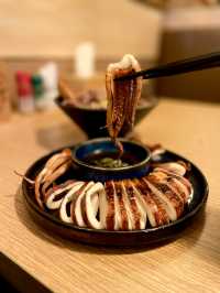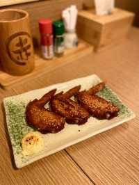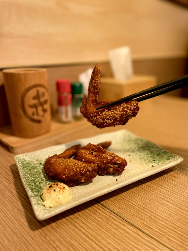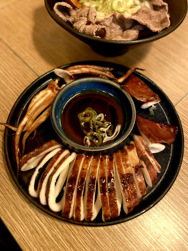 Located near the World Trade Center, easy to find, with a small outdoor seating area, very chill! All food is made to order with great care! 🦐 Karaage River Shrimp Fried to order, very crispy; perfect as a snack with drinks, you’ll keep eating one after another until the whole plate is gone! 🐥 Sesame Chicken Wings Three pieces, including the wing tips; served hot, the chicken is tender and the skin crispy! 🦑 Grilled Whole Squid Tube A large whole squid tube, sliced thinly, fresh and chewy squid paired with a special tangy sauce, very appetizing! 🐮 Beef Inaniwa Udon Soup (Hot) The broth is light and sweet, recommended to add shichimi pepper for extra flavor! —————————————————— Restaurant Information: Aka (Causeway Bay) Shop A, G/F, 66-72 Paterson Street, Causeway Bay