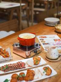 【Seoulmate Cafe】 🧀 A must-visit for cheese lovers! Creative Korean cuisine cafe Super delicious stretchy cheese hot pot 🤩🤩 This time we visited this uniquely decorated Korean cafe at South Coast, Tseung Kwan O. As soon as you enter, you’ll see several giant swings 😆 It’s fun to swing after eating and also great for taking photos 📸 Snow Cheese Mountain Hot Pot 🧀 💰$298 When it arrived, we saw so much cheese! The aroma was amazing as soon as it was served, and the cheese stretches really high~ The ingredients include a medium rare steak 🐮, fried chicken, takoyaki, and other side dishes. We didn’t expect steak and cheese hot pot to go so well together 🤩 The beef is flavorful and tender. However, the portion is quite large, recommended for 3-4 people to share 😙 Spicy Kimchi Clam Soup 🌶️🐚 💰$158 The clams are fresh and sweet with no sand. The sauce is thick, made with Korean chili paste and kimchi 🌶️ Each clam is coated with the sauce. It’s spicy but very flavorful 😋 For those who love spicy food, it’s very satisfying 🥵 Carbonara Soft-Boiled Egg Rice Cake 🍳 💰$98 The rice cakes are chewy with a good bite, and the carbonara sauce is creamy. This one is pretty standard 🤓 Fried Squid Tentacles 🦑 💰$88 Served piping hot with crispy skin. Dipping it in the sauce balances the greasiness, quite a pleasant surprise 🤤 Snow Mountain Pistachio Panna Cotta 🍮 💰$58 The panna cotta is very smooth with a strong pistachio flavor. The cream and crushed pistachios on top add a rich texture. It’s not too sweet and not heavy, you can still eat it after a full meal 😂 Perfect as a dessert after dinner, highly recommended 🥰 Roasted Tea Latte 🍵 💰$51 Balanced tea and milk aroma, very comfortable to drink and not too sweet 😌 It even has a character latte art that looks just like my pet at home, bonus points 🤩 Roasted Tea Chocolate Milk Cap Snow Mountain 🏔️🍫 💰$48 Strong roasted tea flavor with a dense milk cap, pretty good 🥳