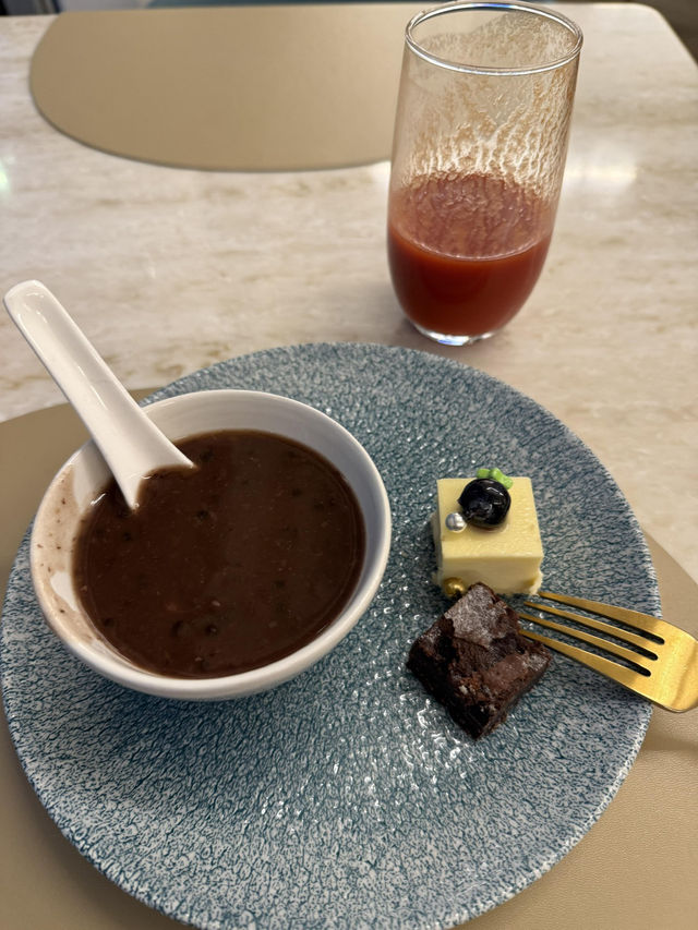 Lounge Found this cost-effective lounge for Easter travel! Kyra Lounge was less crowded than expected, with spacious seating and timely tray collection by staff, making the cleanliness feel top-notch~ 🍛 The food features Hong Kong-style flavors: the pork chop rice has a crispy outside and tender inside, drizzled with black pepper sauce that goes perfectly with rice; the siu mai is springy and juicy, and the custard bun bursts with golden filling when bitten into. While not top-tier gourmet, enjoying hot Hong Kong dim sum while waiting for your flight is super satisfying! Highly recommend the red bean soup~ the smooth and delicate bean paste carries a hint of osmanthus fragrance, with just the right sweetness, instantly dispelling travel fatigue after drinking~ 🥤 The drinks area offers canned beverages like cola and orange juice, as well as a coffee machine and tea bags, perfectly paired with the desserts~ The overall space has good natural lighting, and window seats offer views of planes taking off and landing, ideal for eating and daydreaming~ The Easter experience was great, perfect for those wanting to quickly fill up with a DragonPass card~ Remember to save some room for the red bean soup! #KyraLounge #EasterTravel