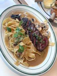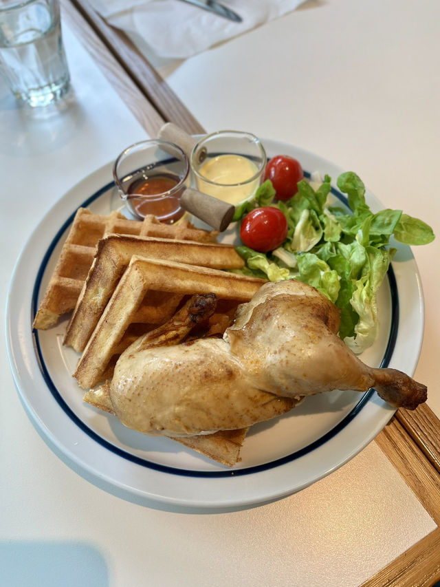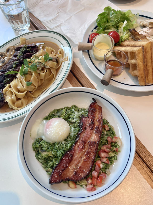 Had them before and thought they were good. This time, came with family for lunch on a holiday. The restaurant’s decor is simple and comfortable, with tasteful arrangements. The staff are polite and attentive. Arrived around 12:30 pm, and the seating was already more than half full. The menu mainly features Western light meals: pasta salads, burgers and fries, all-day breakfast, and more. This time tried the pan-seared sirloin steak 🥩 with mushroom sauce and wide noodles. Ordered Medium Well, the steak was perfectly cooked, juicy and not dry, with a nice charred flavor. The mushroom sauce was rich but not too salty, overall quite good, though the portion was a bit small. Roast spring chicken 🍗 salad served with 🧇 waffles and honey mustard sauce. The roast chicken seasoning was a bit mild, the meat quality was acceptable, not too tough but lacked juiciness. It tasted better with the honey mustard sauce. The waffles were a pleasant surprise, freshly made, hot and crispy outside, soft inside. Simply paired with honey 🍯 was the best combination. Onsen egg with pesto 🥓 bacon risotto. A very unique combination. The bacon was savory and salty, paired with the egg yolk. The sauce was rich but not too thick. The risotto was cooked just right, with a good bite and not too mushy 😋. For dessert, highly recommend this 🥞 Banoffee Crème Brûlée Pancake. Both the appearance and taste are equally appealing. The top layer has caramelized crispiness paired with vanilla custard sauce. The pancake has a strong egg flavor, soft and airy. Served with banana 🍌, strawberry 🍓, and a little bit of toffee sauce. A very satisfying meal. 📍The Pantry & Chips Republic (Mong Kok) Address: Shop 436-438, 4th Floor, MOKO New Century Plaza, 193 Prince Edward Road West, Mong Kok Opening hours: Monday to Sunday 11:30 - 22:00