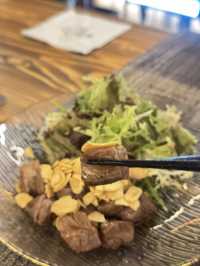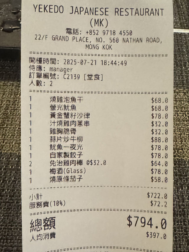 FEN (Yau Ma Tei) 📍 22/F, Yu Fat Plaza, 560 Nathan Road, Yau Ma Tei Happy Friday! Meet up with friends at the newly opened izakaya on the 22nd floor of Yu Fat Plaza in Mong Kok to savor charcoal-grilled skewers. Being on a higher floor offers a panoramic view of the entire Mong Kok street and Lion Rock. The restaurant’s decor features a wood theme, with warm yellow lighting creating a cozy and inviting atmosphere. The izakaya uses Binchotan charcoal for grilling on demand, giving the food a rich smoky aroma and ensuring top-quality ingredients. Glowing Squid 🦑: The glowing squid has a strong oceanic freshness, with a noticeable salty sea flavor upon tasting, accompanied by a natural sweetness. The meat carries a subtle seaweed aroma, adding depth. When eaten raw, the squid’s flesh is firm and chewy, with the tentacles especially crisp and fresh. Fresh glowing squid sashimi may have a slight sticky texture. Golden Crab Roe Salad: The golden crab roe is sweet, salty, and crisp, with a hint of sweetness reminiscent of light smoking or pickling. It has a crunchy texture with distinct granules that burst with a “pop” when bitten, adding layers of flavor. Paired with mayonnaise and lemon juice, the taste is creamy and slightly tangy, balancing the salty freshness of the crab roe. Cucumber slices, crab meat, and refreshing vegetables help neutralize the saltiness, providing a sweet and crunchy contrast. Sauce-Grilled Chicken and Scallion Skewers: The chicken thigh meat is tender and juicy, grilled until the skin is slightly charred while the inside remains soft. The sauce seeps in, offering a sweet and savory flavor similar to teriyaki. The grilled scallions bring out a sweet taste with a hint of char and a touch of spiciness, balancing the chicken’s fat. Chicken Breast Cartilage: The cartilage near the chicken breast is crispy and chewy, prepared with salt grilling. It’s crunchy yet tender, producing a satisfying “crackling” sound when bitten, similar to chicken knee cartilage but more delicate. Refreshing and not greasy, perfect for pairing with drinks. Garlic Sliced Beef Tenderloin: The beef tenderloin cubes are tender and smooth. The garlic slices are cut thin and evenly to avoid burning outside while remaining raw inside during frying. Some recipes suggest blanching the garlic slices in boiling water for 1-2 minutes to remove bitterness and enhance crispiness. The beef is cooked to medium rare. Homemade Dumplings 🥟: Highly recommended by the manager, the dumpling skins are pan-fried to a golden crisp. The chive and pork filling is bursting with juice, and the dumpling skins have many folds, beautifully wrapped, showcasing the chef’s skill. Minced Chicken Skewers: Made from ground chicken mixed with finely chopped chicken cartilage, shaped into long sticks or patties, then grilled or pan-fried. The exterior is crispy and fragrant, while the inside is juicy with a crunchy cartilage texture. Traditionally dipped in raw egg yolk, which adds a smooth and rich flavor. Grilled Whole Eggplant 🍆: Served like a cold dish, it’s soft and tender inside with a dense texture, topped generously with minced garlic, very flavorful. Plum Wine: Balanced sweet and sour flavor with moderate alcohol content, served with crushed ice. Suitable for drinking neat. Made from Japanese plums, sugar, and base alcohol, with no artificial flavors or colors added, offering a natural and pure taste that helps cleanse the palate. Summary: Premium ingredients, no cutting corners A great place for a casual drink #GoldenCrabRoeSalad #GrilledWholeEggplant