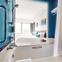 Parent-child staycation! The walk-in bath is great for playing in the water!