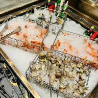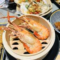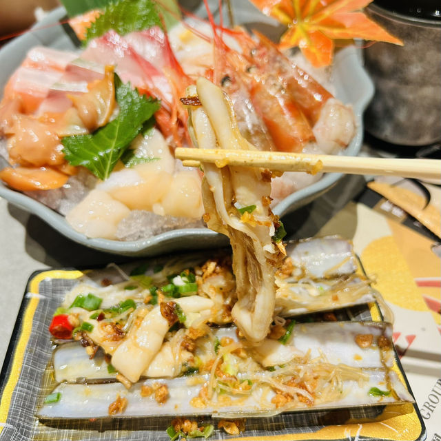 Summer vacation, mother and daughter head to ✨Gokushou Daikiya✨ on the 4th floor of Yalan Centre Selfishly enjoying a three-hour lunch ✅ Sashimi includes salmon, big red shrimp, snow crab legs, Hokkaido scallops, northern clams, sweet shrimp, yellowtail, kingfish, ark shell, razor clams, and more Salmon and yellowtail are smooth and tender. Ark shell and razor clams are sweet and crisp. Big red shrimp are firm and bouncy, sweet shrimp are very fresh and sweet. ▶️ The restaurant has a new menu, especially recommending steamed large head prawns in a basket, typhoon shelter style fried large head prawns, sea salt baked conch, spicy wine cooked conch, and XO sauce steamed razor clams with vermicelli Sea salt baked conch is crunchy and perfectly seasoned. Large head prawns have fresh roe, with firm and bouncy meat; steamed in a basket preserves the original flavor, while typhoon shelter style adds a tasty twist. XO sauce steamed razor clams with vermicelli are very fresh, tender, and satisfyingly large. ✅ Highly recommended for value ▶️ sea urchin gunkan, ginger and scallion fried eel balls, Saikyo grilled halibut, crispy fried squab, puff pastry baked turbot fish soup, and oil-salt baked crab Sea urchin gunkan melts in your mouth. Puff pastry baked turbot fish soup is rich and high quality. Sesame chicken wings and grilled eel are my personal favorites. Crab 🦀 has smooth roe and fresh sweet meat. ✅ The buffet area also offers plenty of food and drinks with unlimited refills, a wide variety of beverages including sake and plum wine, many desserts and ice cream options, over 10 kinds of bite-sized sweets, and unlimited Häagen-Dazs ice cream and popsicles er ie blog blogger foodie ielife