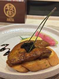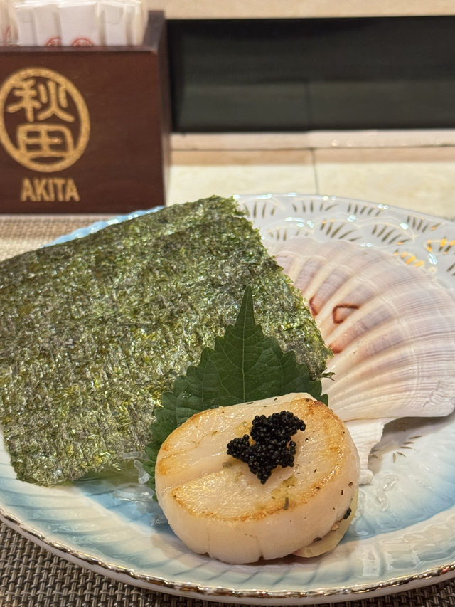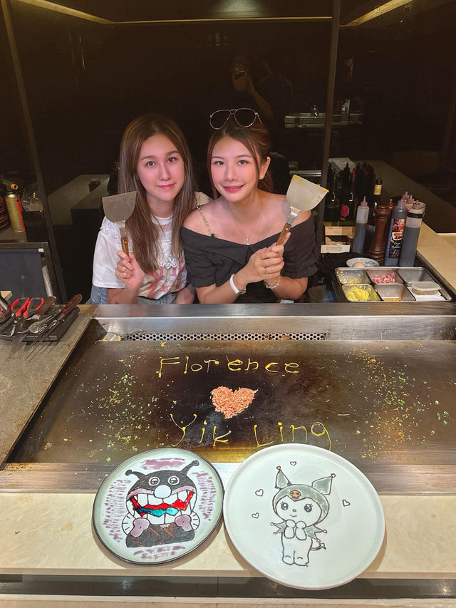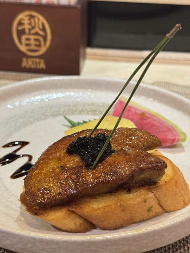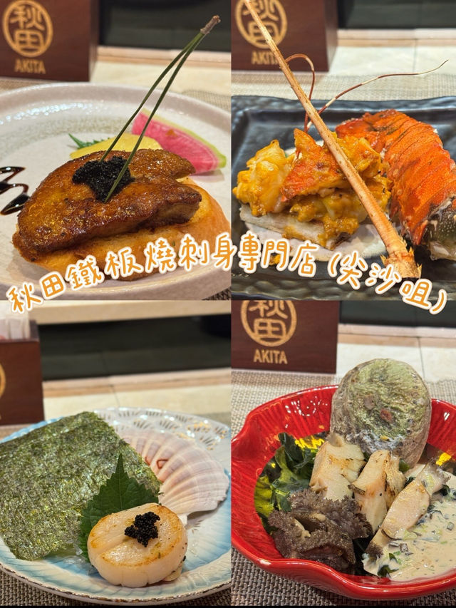 Today we went to Tsim Sha Tsui to enjoy a premium teppanyaki meal. Akita is already very famous in the teppanyaki world, so we took the opportunity to gather with friends and pay a visit. We ordered the two-person set menu, which includes: Seasonal salad Steamed egg with fish roe and foie gras Fresh seasonal lobster 🦞 Whole fresh South African abalone Seasonal seafood (scallops) Kagoshima marbled wagyu thin rolls Akita fried rice Stir-fried vegetables Lobster clear soup Selected dessert (sesame ice cream) Each person 888 The environment here offers great privacy, with multiple private rooms, and there is also a chef performing and cooking right in front of you, making it a great place for gatherings. All the seafood here is live; before grilling, you can see them moving vigorously on the table! All ingredients are carefully selected premium items. Also, the lobster head is full of roe, super flavorful! The abalone is perfectly pan-fried, and the meat is very tender and chewy. The foie gras is a big piece, and eating it with toast gives a rich texture! Finally, the chef even made lobster soup from the lobster head, which was very fresh and sweet! There was also a chef who did teppanyaki art, writing my and my best friend's names, perfect for taking photos! So happy!