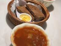 Review: Gem Restaurant in Yuen Long - A delightful and reliable choice for lunch set meals** **Date:** August 9, 2025 (Saturday) afternoon **Location:** Shops 7-9, G/F, Ming Zhu Building, 1-11 On Lok Road, Yuen Long **Average spending per person:** About HKD 200+ (including service charge) After strolling through the Yuen Long market on Saturday afternoon, I wanted to find a place to sit down and have a good meal away from the crowds, so I walked into "Gem Restaurant" located on the ground floor of Ming Zhu Building. The shop isn’t very big but is well-lit, simply and comfortably decorated, with a cozy vibe like a British community café, making it very comfortable to sit in. This time I mainly tried their **lunch set menu**, and the overall experience exceeded expectations, making it one of the better Western dining options in the Yuen Long area. **🥣 Starter: Borscht (Russian Soup)** The set includes a classic Hong Kong-style borscht. As soon as it arrived, the rich aroma of vegetables was noticeable. The soup had a moderate thickness and generous ingredients, with tender carrots, onions, cabbage, and a small amount of minced beef. The flavor was a balanced sweet and sour, appetizing and warming—perfect as a starter with just the right portion. **🍝 Main Course 1: D. Chicken Chop with Pesto Fettuccine (+HKD 98 for set main course price)** This was the highlight of the day! The chicken chop was pan-fried to a golden crisp, with crispy skin and tender meat, juicy with every bite, perfectly cooked. The key was the **“pesto”**—not the traditional basil pesto, but more like a homemade sauce blending herbs, garlic, and olive oil. It was a light green color, fresh and not greasy, with a subtle herbal aroma that perfectly coated every strand of fettuccine. The pasta was cooked al dente, with just the right amount of sauce—not watery nor too dry. This dish was refreshing yet satisfying, highly recommended. The portion was generous and definitely filling. **🥩 Main Course 2: J. Charcoal-Grilled Ribeye Steak (+HKD 148)** I chose **medium-well**; it arrived with beautiful charred grill marks, very appealing. When cut open, the inside was evenly pink, showing precise doneness. The meat itself was medium quality, not the melt-in-your-mouth premium wagyu, but the charcoal grilling gave it a strong aroma and rich flavor. The juices were fairly abundant, and it was delicious with just simple black pepper sauce or sea salt. For the price of a lunch steak, the value was reasonable, and the charcoal flavor was a plus. The texture was tender, not tough. **☕ Drink: Iced Spanish Coffee (+HKD 25)** Out of curiosity, I ordered this special drink. It had a layer of creamy milk foam on top and iced coffee underneath, which needed stirring before drinking. The texture was smooth, sweetness moderate, and the coffee wasn’t too acidic. It’s suitable for those who like sweet coffee and worth trying! **🍹 Drink: (Lunch) Gem Fruit Tea (+HKD 28)** As the restaurant’s signature drink, I had high expectations. It did not disappoint! Served in a tall glass, colorful with visible fresh fruit slices (like apple, orange, lemon, etc.). The tea base was lightly sweetened, naturally blending the fruit’s sweet and sour flavors without being overly sweet or artificial. Refreshing and thirst-quenching, it paired very well with the main courses. Highly recommended! **🍮 Dessert: Milk Pudding (+HKD 27)** A perfect ending to the set meal. The milk pudding was very smooth and silky, melting in the mouth with a rich but not heavy milky flavor. The sweetness was just right, making it a light and pleasant finish after the main courses. Simple but skillfully made. Recommended! Very tasty. **💁 Service and Environment:** The staff were friendly, proactive in taking orders, and the pace of service and food delivery was reasonable. The environment was clean and tidy, seating comfortable, and air conditioning sufficient. Note there is a **10% service charge**. **💰 Summary:** Gem Restaurant’s lunch set offers pleasant surprises. Especially the “Chicken Chop with Pesto Fettuccine,” which is uniquely flavorful and excellent; the charcoal-grilled ribeye steak is well-cooked with enticing smoky aroma; the fruit tea and milk pudding are also high quality. Overall, the food quality is solid and sincere, not typical of a regular cha chaan teng, leaning more towards refined Western casual dining. Prices are mid-to-high range for Yuen Long, but considering the food quality, environment, and service, it’s good value for money. Suitable for friends gathering, couples dining, or anyone wanting to quietly enjoy a quality Western meal. Next time in Yuen Long, I’d like to try their other dishes! **Recommended dishes:** Chicken Chop with Pesto Fettuccine, Gem Fruit Tea, Milk Pudding, Charcoal-Grilled Ribeye Steak (medium-well recommended)