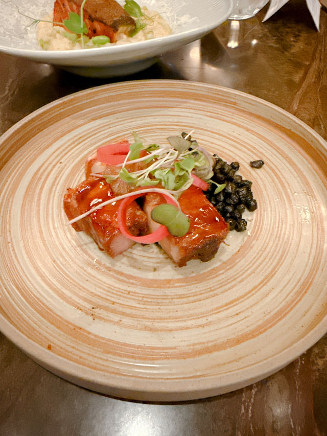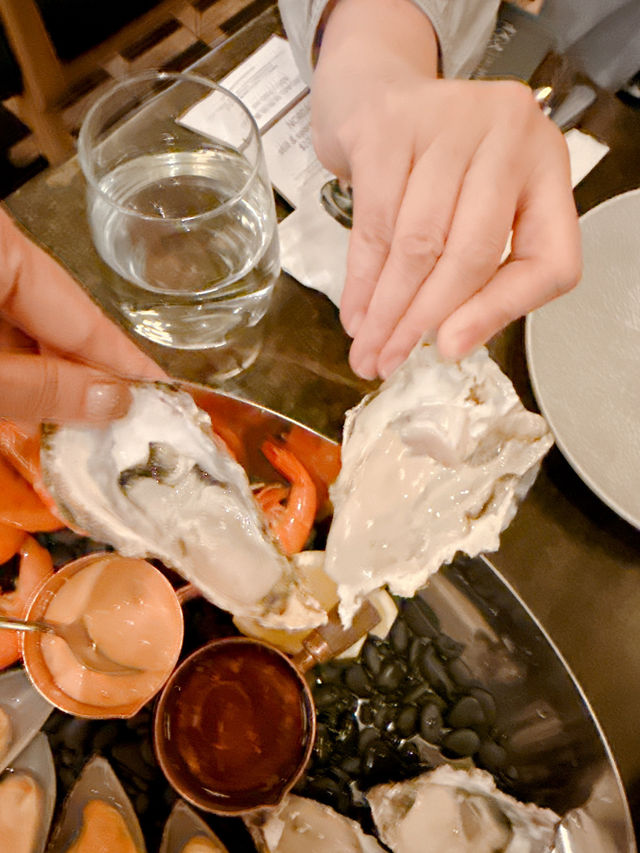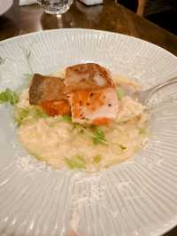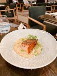 I made plans with friends to go to this grand and high-quality "The Grill Room" for lunch. On weekends, they offer a Semi-Buffet Lunch (+$98) + 1 Main Course, which lets you enjoy unlimited salad bar and desserts. It includes the chef's daily soup and a drink. The salad bar has many options, about 6 kinds, plus fries, chicken nuggets, desserts, and more. It's really abundant and offers great value for money. The cafe design is quite stylish, with soft lighting and elegant decor, also featuring red and white wine as decorations, giving it a trendy vibe. There are nine Main Course options, ranging from $48 to $198, so there’s definitely one for you. 🍴 Chef's daily soup - Pumpkin cream soup Smooth and creamy pumpkin cream soup, rich in flavor and delicious. 🍴 Pan-seared salmon fillet with risotto + $148 Thick-cut salmon pan-seared to a crispy skin, the flesh is fresh and tender. The risotto is soft and creamy, filled with plenty of edamame, adding texture. 🍴 Crispy pork belly with pearl noodles and Japanese onion sauce + $88 The pork belly skin is roasted crispy and flavorful, the pork belly fat is evenly distributed, the meat is tender and juicy, slightly salty in taste. Paired with chewy pearl noodles that resemble fish roe, quite unique. 🍴 All-day seafood platter $150 Saw the all-day seafood platter on the menu, which includes oysters 🦪, cooked shrimp 🦐, and mussels. The price is reasonable, so I gave it a try. The cooked shrimp is crisp and fresh, the oysters 🦪 are plump and flavorful, and the mussels are also good. Really love 💕 the various salads at the salad bar, especially recommend the two-tone melon and Parma ham salad, grilled mixed vegetable salad, and shrimp toast. There’s also cheesecake and canelé, a super high-quality salad bar. Like my sharing? Remember to like 🩷 + Follow 📌 me! @thegrillroom 🔸The Grill Room (Causeway Bay)🔸 📍Shop 3B, 3rd Floor, Causeway Bay Plaza 2, 463-483 Lockhart Road, Causeway Bay