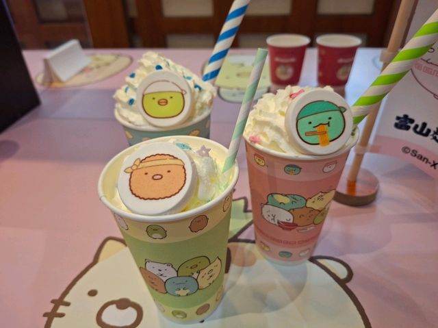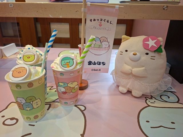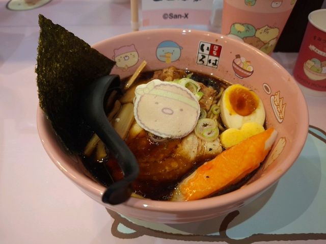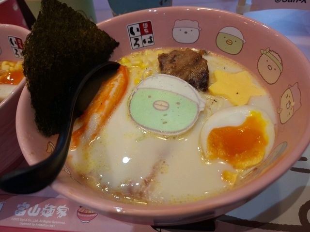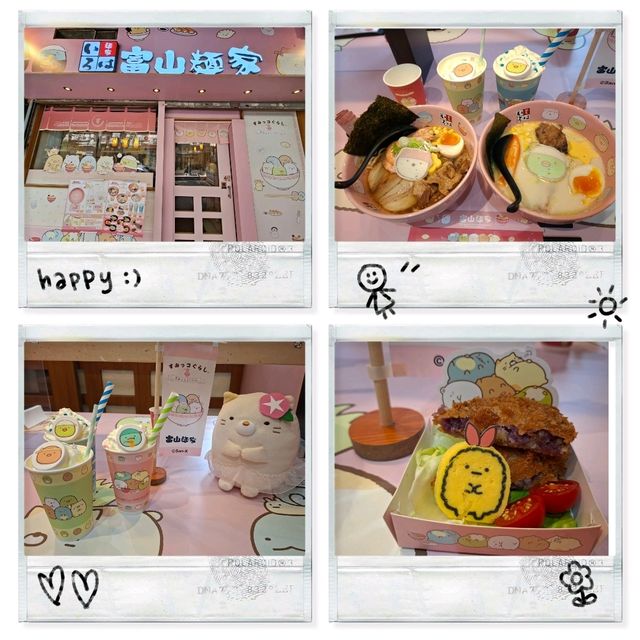 ✨️I saw many food lovers sharing online recommending Toyama Noodle House. This season’s theme (8/1/2025–11/30/2025) is Sumikko Gurashi😆 The entire store’s exterior and interior decorations are all Sumikko Gurashi characters🤩 So cute😘 The restaurant also provides plush toys for us to take photos with, but I already brought my own Sumikko Gurashi plush to dine with me😍 Even the tables have Sumikko Gurashi plushies🥰🤩 ✨️Of course, we ordered the signature ramen, snacks, and special drinks related to Sumikko Gurashi. The three of us each had a bowl of ramen: black soy sauce ramen, milk ramen, and white salt shrimp ramen. I had the black soy sauce ramen. First, I thought all three bowls looked very exquisite. The broth was rich with soy sauce flavor and the noodles were very springy. The char siu had a bit of fat, but it was within an acceptable range😝 There was half a soft-boiled egg and crab stick😂 My friend who had the milk ramen said the broth was smooth and cute🤣 ✨️For snacks, we ordered a special chestnut purple sweet potato cake, which was very crispy and had a strong purple sweet potato flavor more than chestnut😜 We also had a piece of tamagoyaki with a Sumikko Gurashi character on it🤣 It was fried shrimp🥰 ✨️For dessert, we ordered a special parfait. It had ice cream on top and pudding at the bottom🤭 ✨️For special drinks, we ordered the special lychee coconut jelly soda, special white peach oolong milk tea, and special green apple coconut jelly soda. There were coconut jelly bits, and the Sumikko Gurashi marshmallows were too cute—I really didn’t want to eat them😂 🥳 Friendly reminder: The restaurant does not accept reservations, only walk-ins with queueing, and you must be present to be seated. We waited about 30 minutes before getting a seat😆 But their staff were very polite👍 and provided great service😊 ✨️Finally, I wonder what plush theme will come out in December? Really looking forward to it😆 Hope to try their new ramen next time🤭🤣 💯 Everyone can consider bringing kids here to eat and experience it🤭 Kids will definitely be very happy❤️🥳 Like on IG and get a file gift💯 📍Toyama Noodle House 📍Address: G/F, 7 Heung Yuen Street, Causeway Bay 📍Sumikko Gurashi Limited-Time Period: August 1, 2025 to November 30, 2025 Recommended Diary Guide Suggestion