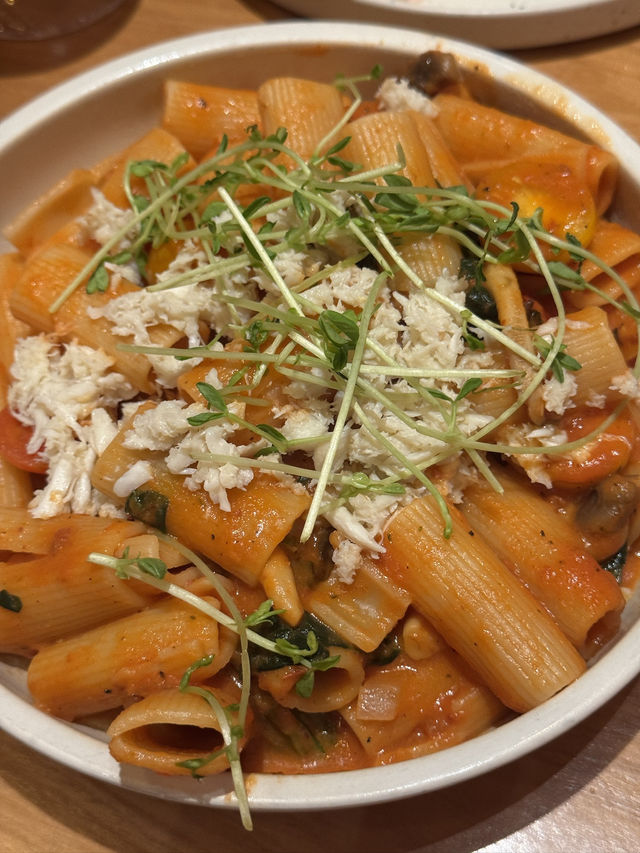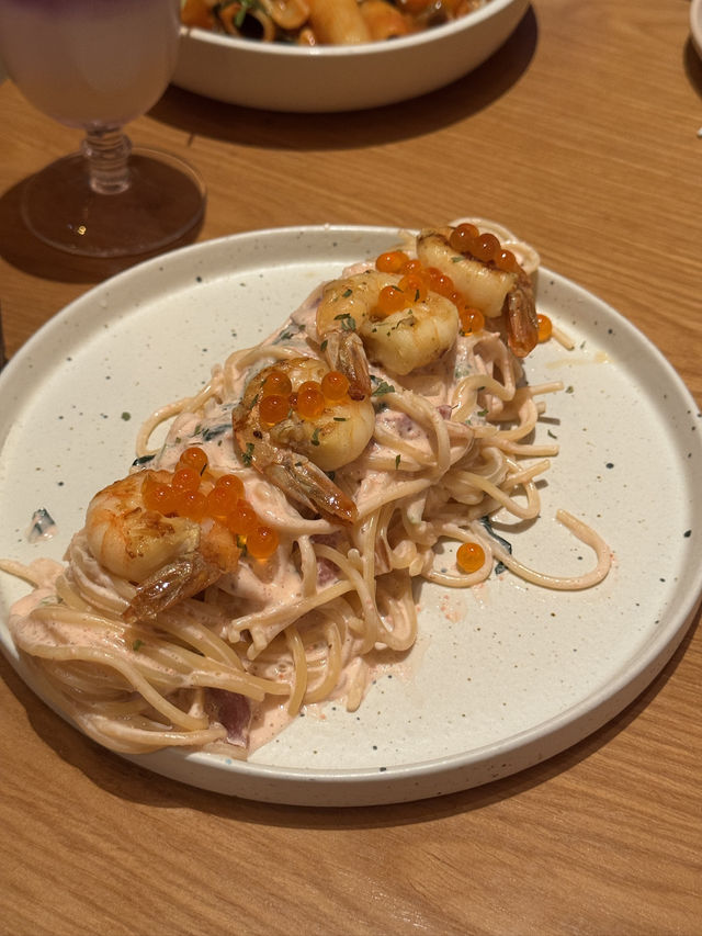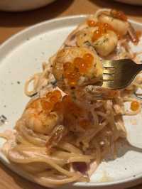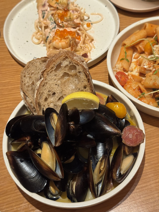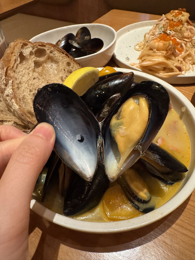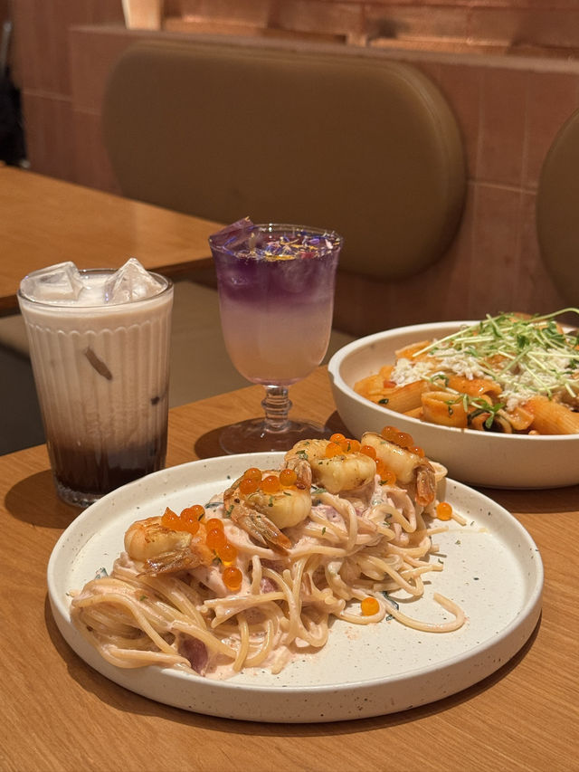This exotic cafe in Prince Edward was introduced to me by a friend a while ago, and this time, I brought another friend to try it out. The location is delightful with its orange-red brick design, which is very distinctive! First, we ordered the Iced Chocolate and Lemon Fizz. The Lemon Fizz has a beautiful purple hue and is made with lemon, honey, butterfly pea flower, and soda water. It tastes tangy and refreshing, perfect for whetting the appetite. Spanish Chorizo and Mussel Pot The mussels are plentiful, plump, and meaty, and the sauce is incredibly flavorful! Not a single morsel was left behind! Crab Meat Vodka Tomato Cream Rigatoni The vodka adds a hint of alcohol aroma to the pasta, while the sweet tomato and crab meat make the dish anything but monotonous. Mentaiko Cream Bacon Spinach Prawn Pasta This can be considered one of their signature dishes. The presentation is stunning, the pasta is creamy, and the prawns are firm and bouncy. Matcha French Toast with Red Bean Mochi and Matcha Ice Cream This dessert is truly amazing! It’s not greasy at all—the toast with condensed milk paired with rich matcha sauce, soft and chewy red beans, and cold matcha ice cream creates a delightful hot-and-cold sensation. It’s incredibly satisfying, and dessert lovers shouldn’t miss it! 2 Soon Cafe (Prince Edward) G/F, 324 Sai Yeung Choi Street North, Prince Edward