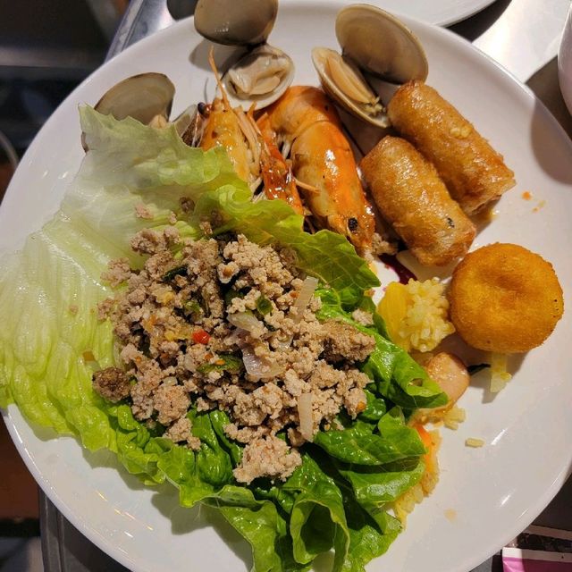 #Consumption Voucher Strategy #Photo-Photo Restaurant #Dating Good Place There is a large shrimp tank next to the seat, big head shrimp ready-to-eat 🦐 all-you-can-eat seasonal seafood mussels, oysters 🦪 and a variety of meats 🐖🐂 fried food 🍗 skewers 🍢 cold plates 🥗 Thai desserts 🍧 and so on Other barbecue foods are: chicken wings, chef sausage, curry squid, Taiwanese sausage, pork neck, red sausage, golden ribs, beef ribs, spring fish, pork chop 🥩, cheese balls, beef balls, gong balls, squid balls, lobster balls, garlic bread 🍞 Fruits and vegetables are: eggplant 🍆 golden mushroom, corn 🌽 baby cabbage, pineapple 🍍 The ice cream has tofu ice cream 🍦 can be said to be special, there are many other flavors There are also many kinds of drinks to choose from, unsweetened tea and soda 🥤🧃 even tom yum gong 🫕