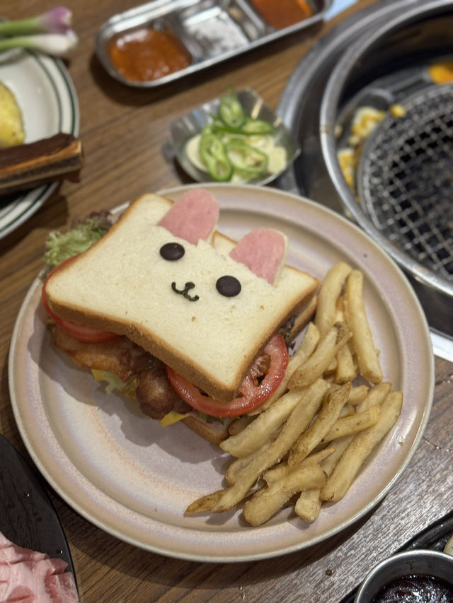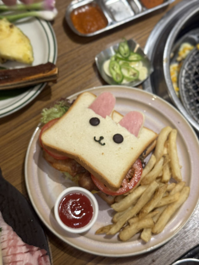 My son is learning the names of animals, and I just saw that Tsuen Wan Discovery New Town 炑8 Korean Grilled Parent-Child is doing an animal theme, and has a special themed children's meal, so I decided to go in and enjoy it to summon his knowledge of animals. The restaurant also includes a play house, which has a simulated supermarket, slide, toys🪀, and a ball pool for children to unwind. Parents can have a place to play while eating Korean barbecue. The rabbit toast is too cute, cooked ham, cheese, pan-fried chicken ribs, lettuce, tomatoes, with french fries, healthy and cute😍, toast texture is soft and cooked, highly recommended! In addition to children's meals, there are also different monthly zero suitable children's meals provided, which take into account the needs of children. Pear Juice Chicken Leg: The chicken skin is grilled until crispy and tender, the juice marinated the meat to give it a light fresh fragrance. It tastes particularly sweet and clear. King beef ribs: a whole strip presented, very exaggerated, fat is not rich, more tender taste, help bone and meat with chewiness, richer flavor, oil flowers fine, melt in the mouth, with a creamy aroma. Wrapped in kimchi and garlic slices and the greasiness of grilled meat. Due to the fat and fascia, the ribs are fleshy and rich in muscle fibers. Thick-cut pork belly: charred and crispy on the outside, fatty and lean on the inside, rich in fat, rich in meat, extremely rich in taste, the surface will undergo a Maillard reaction, forming a dark brown, extremely crispy shell, burnt. The oil is forced out in large quantities, the epidermis is crystal clear, soft and chewy and melts in the mouth. Eel (half portion): The meat is plump and delicate🐟, after cooking, usually with rich freshness and sweetness, the meat is delicate and soft, plump and juicy, melts in the mouth; dipped in soy sauce, mirin, sugar and other boiled sweet and salty sauce; Wrapped in seaweed, along with plump boneless eel, elevating the layer. summary: A good place for children to unwind Adults can enjoy the delicious Korean barbecue