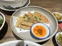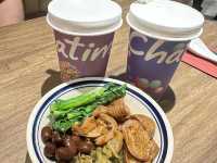 I came to Tsuen Wan with my friends today and wanted to eat Taiwanese food. Duan Chun-jin wanted to try it a long time ago, but today I saw that I don't have to queue We first ordered the signature red-broiled tendon heart beef noodles, green peppercorn hand-torn chicken with noodles, another order of the snack pork large intestine and three-star onion meat pot cake, and another order of oil wheat vegetables The red-broiled tendon heart beef noodles are slightly spicy and quite tasty. I chose the handmade noodles. They are very smoky and tough, and they are very rich in soup. The soup is very rich, plus some pickled vegetables are delicious, and the beef is also delicious Also ordered a green peppercorn hand-torn chicken with noodles, this spicy and very tasty, and the sauce with dried accompaniments quite good 👍 We also ordered the three-star onion meat pot cake, which is quite delicious🤤 quite fragrant three-star onion flavor Then I ordered a plate of oil wheat vegetables and pork large intestine, both of which are very good with noodles😆 We, of course, ordered Taiwanese drinks, the winter melon and sage special was quite fresh, and the black sugar pearl fresh milk was also very tasty