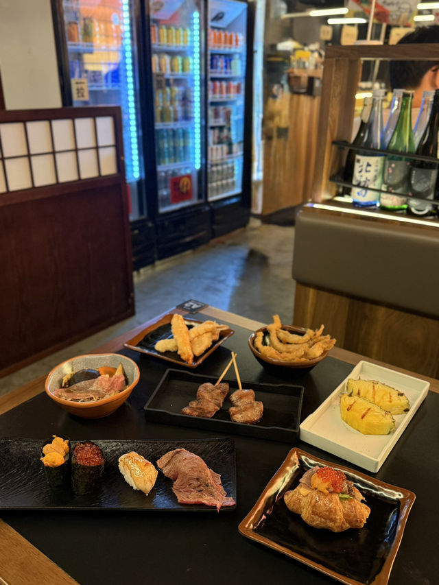 This A5 Miyazaki Wagyu Toga all-you-can-eat meal has a lot of food choices. In addition to the main character Wagyu Toga all you can eat, there are many other things to eat, I guarantee you will eat with your stomach in hand! First, Wagyu sushi, sukiyaki, evenly distributed oil, melts in the mouth, full of oil aroma. For those who like sukiyaki, the beef is tender and served with sweet sukiyaki sauce. It's good! The sashimi and sushi are very rich, with a variety of choices, even seaweed! The freshness is excellent, each piece is fresh and sweet and plump! Friends who like to eat bacon and flower stalks can't miss it! The bacon is stewed soft and well seasoned, the flower stalks are thick enough, and every bite is full of collagen! The seafood cones were quite attractive and contained a variety of seafood such as shrimp, bacon, squid, and mussels. There is also warm crab congee, full of freshness. There are many choices of skewers, chicken, beef, pork, seafood and more! In addition, the tempura is fried to a golden brown and crispy, not too greasy! Wagyu caviar seaweed croissant, this combination is really evil! The oily flavor of wagyu beef, the salty freshness of caviar, the freshness of seaweed, plus the crispy croissants, quite good! There are also breast pigeons! Crispy skin and tender meat! Finally, the desserts were very rich, a variety of fruits, desserts, and durian! It really satisfies all the wishes of dessert lovers! Overall, this meal was a great value! The rich variety of food is definitely worth a try! 📍Kurokitei Izakaya G/F to 1/F, Kwun Tong Building, 58-60 Cameron Road, Tsim Sha Tsui #Tsim Sha Tsui #Tsim Sha Tsui all you can eat #Japanese all you can eat #all you can eat #sushi #wagyu #seaweed #sashimi #skewers #alloucaneat