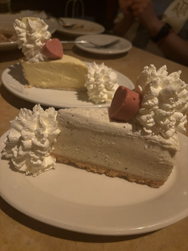 Tonight, I met up with a few of my besties for dinner at The Cheesecake Factory located in Gateway Arcade, Tsim Sha Tsui. The experience was absolutely delightful 😊 The warm and cozy ambiance immediately helped us unwind from our busy routines. Starting with the freshly served warm bread and butter, we could feel the thoughtfulness in every detail. The soft whole wheat bread with a hint of brown sugar paired perfectly with the creamy, non-greasy butter, setting the stage for the delicious meal ahead. The main courses did not disappoint: the Garlic Cream Mushroom Chicken Farfalle was coated in a rich sauce, with every bite bursting with the freshness of mushrooms and the aroma of cream, yet it never felt too heavy. The Nachos were generously topped, and the guacamole and tomato salsa complemented each other perfectly, offering a crispy yet layered taste. The pizza had a wonderfully elastic crust, and the combination of cheese and meat filling was incredibly flavorful—even friends who don’t usually eat pizza couldn’t resist grabbing an extra slice. The highlight of the evening was undoubtedly the signature cheesecake. The display case was filled with options that looked like miniature dessert masterpieces. We chose the Key Lime Cheesecake, which had a smooth and delicate texture. The fruity tang balanced the richness of the cheese, leaving a refreshing aftertaste. Everyone agreed that this place is not only a treat for the taste buds but also a perfect spot to enjoy quality time with family and friends. For our next gathering, this will likely be our first choice. Address: The Cheesecake Factory (Tsim Sha Tsui) Shop G102, Gateway Arcade, Harbour City, 25 Canton Road, Tsim Sha Tsui