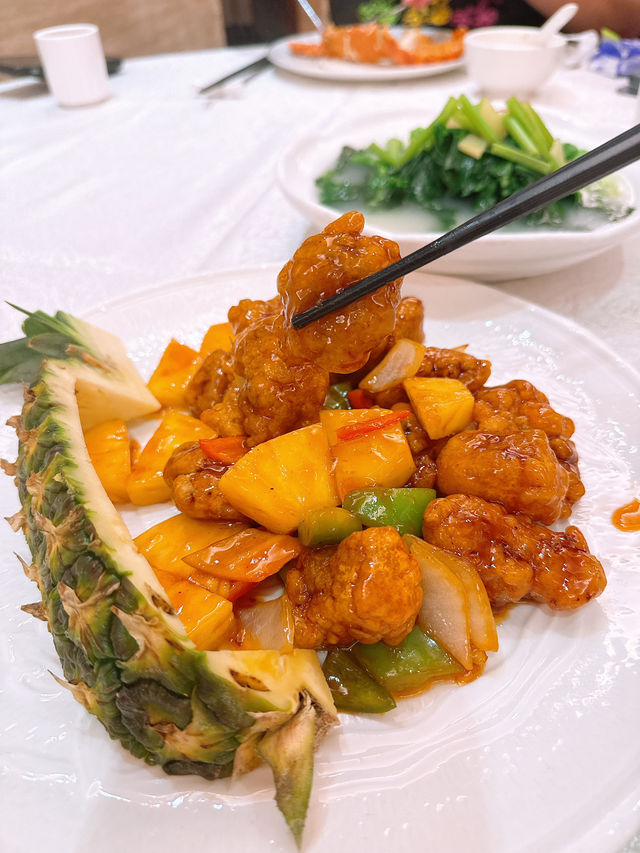Sai Kung is not only famous for its coffee shops but also for its seafood. This particular restaurant, located on Market Street, proudly displays its Michelin accolades, having been awarded one Michelin star for 15 consecutive years 🌟. We chose the 4-person Seafood Set Menu C: 🔸 Crispy Salt and Pepper Tofu (8 pieces) The tofu is crispy on the outside and tender on the inside, with a flavorful salt and pepper seasoning 😋. 🔸 Stir-fried Razor Clams with Ginger and Scallions (4 pieces) The razor clams are fresh and plump, perfectly complemented by the aromatic stir-fried ginger and scallions 😋. 🔸 Salt and Pepper Baked Abalone (4 pieces) A signature dish of the restaurant, the salt and pepper abalone is delightfully chewy and flavorful 👍🏻. 🔸 Tempura Oyster Lettuce Wraps (4 pieces) The oysters are as large as the lettuce leaves, resembling oversized oyster fritters 😍. They are fried to a crispy perfection and paired with refreshing lettuce. 🔸 Lobster E-Fu Noodles in Superior Broth (2 lobsters) Sweet and fresh lobster meat paired with springy E-Fu noodles 🦞. 🔸 Sweet and Sour Pork with Fresh Pineapple The tangy and sweet pineapple pairs perfectly with the crispy yet tender pork ribs, offering a refreshing balance. 🔸 Seasonal Vegetables in Rice Soup The vegetables are fresh and sweet, providing a palate-cleansing balance. 🔸 Coconut Sago Pudding Ending the meal with this dessert is truly satisfying 😍. Lok Fuk Restaurant (Sai Kung) 📍 G/F, 49 Market Street, Sai Kung