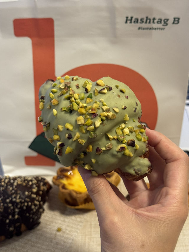 I've been wanting to eat Hashtag B for a long time 😍 I see it's now open in Mong Kok, so convenient I must eat it 🥰 I came to see a lot of choices, each one is very beautiful and attractive 🤩! 🧁 Napoleon Caramel Layered Tart ($18) You must try the layer tart when you come to hashtag b! It's beautiful and crispy😍 The caramel is sweet but not too greasy, just right💓 🥐 Pistachio Croissant ($30) 🍩Hazelnut Chocolate Croissant ($26) Then I chose two croissants, one pistachio😆, one chocolate🍫 The croissants are very large, the crust is crispy and fluffy, and there is sauce on top😍 There is also filling inside, very surprising🥰 🧇 Pistachio Pastry Waffle ($34) This fruit pastry waffle is a must too😍! The waffles are super crispy! The outside is served with chocolate sauce, and pistachio pieces. There is pistachio filling in the middle of the waffle. This one is super delicious🤤! Hashtag B 📍Shop G1 and G2, G/F, MegaWorld Centre, 1N Sai Yeung Chai South Street, Mong Kok