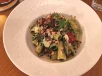 Address: Shop G, Golden Gate Commercial Building, 136-138 Austin Road, Tsim Sha Tsui, Kowloon Transportation: Exit D of Jordan MTR Station, 6-minute walk. Opening Hours: 11:30 AM - 10:00 PM (Monday to Thursday, Sunday); 11:30 AM - 10:30 PM (Friday, Saturday, and public holiday eves) Potluck Eatery is located in the Tsim Sha Tsui area and features a minimalist industrial wooden design. The spacious interior includes a large mural and small wooden stools, providing a relaxing atmosphere for guests. The restaurant specializes in international cuisine, offering dishes such as steaks, pasta, risotto, salads, snacks, and beverages. Here are the dishes sampled: 1. Basil Pesto Wild Mushroom Rigatoni Set $178 2. Spicy Seafood Squid Ink Pasta Set $218 (Squid ink pasta stir-fried with garlic slices, served with shrimp, mussels, and squid, offering a rich aroma.) 3. Butter White Wine Pan-Seared Norwegian Halibut Set $278 (Family members praised the halibut for its crispy skin and tender meat after being pan-seared and baked.) 4. Chargrilled Argentine Angus Ribeye Set $358 (The Angus ribeye is extremely tender with no sinew.) 5. Chicken Breast Caesar Salad $166 (The chicken breast Caesar salad is healthy, with generous portions of chicken breast and fresh salad greens.) 6. Crispy Fried Squid with Squid Ink Salad Dressing $98 (This squid ink salad dressing is incredibly flavorful and a must-try.) Each set includes soup, garlic bread, dessert, and a drink. Soup: Carrot Soup with Garlic Bread (The carrot soup is rich with carrot puree, offering a healthy and satisfying texture.) Desserts: - Chocolate Ice Cream - Lemon Meringue Pie (additional $38) (The lemon meringue pie is tangy and delicious, not overly sweet, with a perfect crust.) Drinks: - Lady Yuzu (additional $49) - Amber Fiesta (additional $49) - Hot Lemon Water