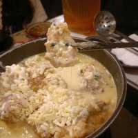 Today I ate this famous cheese chicken pot specialist with my friends for a long time. When I think of cheese chicken pot, I think of this 'Don't Go Chicken'. Golden Cheese Chicken Pot (Small) $208 Super rich cheese chicken pot can request the portion of ingredients know how to order of course to order intense cheese 😆 d cheese really melted in the chicken enough seasoning two people actually just eat the chicken pot is full 70% 🫣 regret still order so much Freshly made five platter dumplings (half portion) $63 Spinach Pork Dumplings, Leek Dumplings, Fresh Shrimp Wontons, Wagyu Beef Dumplings, Phoenix Dumplings Each dumpling is a dumpling with real meat or vegetables Hand-beaten Five Treasures Platter (Half) $63 Beef balls, pork balls, catfish balls, squid balls, shrimp balls are all hand-made Fresh fried crackers (half portion) $32 This scallion is really a world-class large portion. The crust is thick and fried very crispy. The cheese soup is very absorbent after dipping. It is the best Five spice fresh beef $98 Unexpectedly large portions but also super tender and also itself seems to be seasoned with sesame oil smooth quite heavy taste! Worth eating! Sugarcane Licorice $78 When having hot pot, you must use sugarcane and grass root to relieve the heat Overall the taste quality is quite good especially cheese lovers really have to come try another sauce fee of $ 18 per person however ordered cheese chicken pot and cheese soup are basically no sauce #Riceless Chicken Deluxe 📍3/F, Jardine Centre, 50 Jardine Street, Causeway Bay #mroolong #foodieoolong #foodie #hkig #hkfoodie #hkfoodstagram #hkfoodblogger #hkfood #foodielife #foodiehk #life #foodiegram #foodpic #travelhk #chicken #cheese #Hong Kong Food #Causeway Bay Food #Cheese Chicken Pot #Causeway Bay Chicken Pot #Camera Eat First