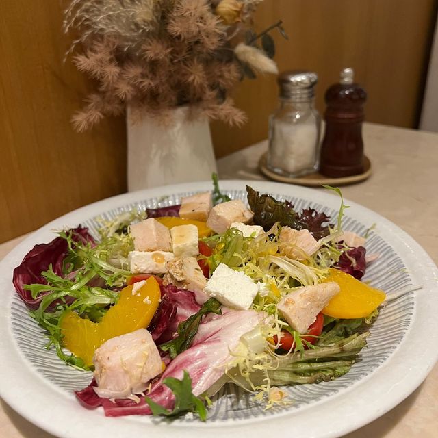 The environment and food of Western restaurants in many industrial buildings are good nowadays! Today try a Western restaurant located in Sin Po Kong🍴 The environment is simple with hipster style, most of the seats are very comfortable to sit, each table is placed with a beautiful dried flower😍 The menu only has All day Menu, with pasta, rice, pizza, salad and burger options😋 The meal comes with a Japanese soup/salad For the soup we chose the borscht sour and appetizing, the salad vegetables were very fresh Summer Organic Chicken Breast Salad Chicken breast cut into pieces is easy to enter, the meat is very tender, then added peach and salad vegetables, clear, very suitable for hot weather, feel very fresh👍 Slow-cooked 64°C poached eggs and carbonara pasta The ingredients are bacon, mushrooms and spring eggs, moderately seasoned, the pasta is smoky and tough. Each strip is delicious with sauce! The half-cooked hot spring eggs achieve a melting effect, which is rich in taste when eaten together 👍 Earl Gray Tea Cream Cake Very fragrant Earl Gray tea taste, the cake is fluffy. Handmade Basque cheesecake The cheese tastes rich and smooth, and looks good! Peel ice sugar lemon cold brew tea / sparkling lemon coffee The sweetness of the peel is added to the cold brew tea. The coffee can be added according to personal preference. It is very refreshing after drinking😋 Coti the Bistro (Wu Fong Street) (Sin Po Kong) Shop C, G/F, Wing Hien Industrial Building, 31-33 Wu Fong Street, Shin Po Kong #localtour #popularrestaurant #foodie