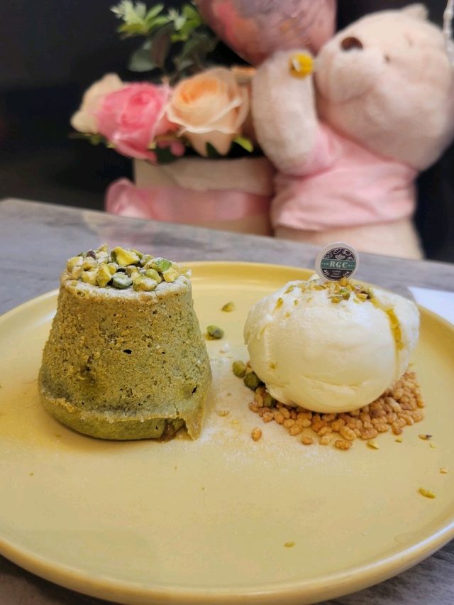 Very comfortable little fresh cafe Room Garden Cafe🌸, really a pretty good environment to gather, quality food, fair prices, desserts and drinks are very exquisite. 🦀Fried soft shell crab with black truffle sauce Italian stew: The soft shell crab is super large and crispy, the stew creamy 🦐 Garlic Phoenix Tail Shrimp Scallops Wild Mushroom Olive Oil Pasta: Savory and delicious 💚Pistachio Hearts with Vanilla Ice Cream: This dessert is super recommended, the melted heart is extremely rich in pistachio flavor. 🍑Honey White Peach Milk Cover Oolong Tea: The drink is very tasty, the milk cover is very rich, the oolong tea base is very good, there are two white peaches inside 📍Room Garden Cafe Shop 32C, 2/F, Nan Fung Centre, 264-298, Tsing Shan Road - Tsuen Wan Section