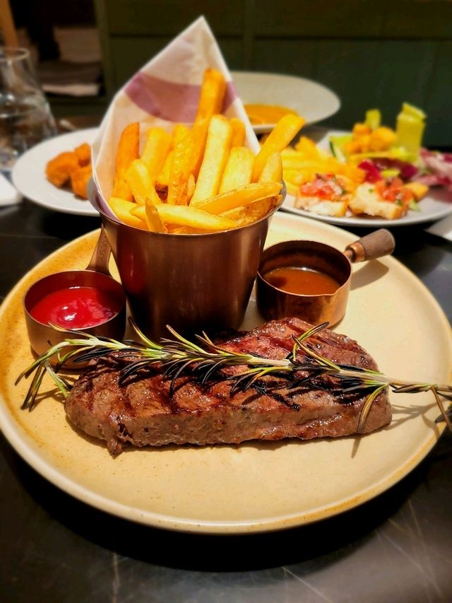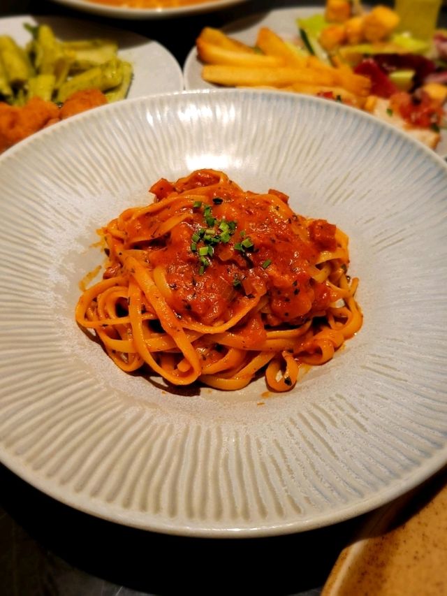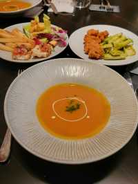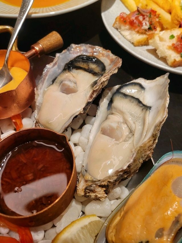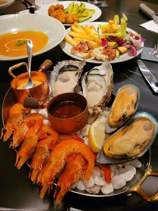 The Grill Room, an American steakhouse, truly delivers quality. Their main course steaks are a guarantee of excellence, and the pasta is equally delightful. The restaurant's decor is sophisticated, with spacious seating that ensures a comfortable dining experience. 🩵 Starting with the seafood platter 🦪🦐, it’s truly impressive. It includes two incredibly fresh oysters, two mussels, and fresh, bouncy cooked shrimp. For the price, it’s an absolute steal and a delightful surprise. The Lunch Semi-Buffet includes soup, drinks, and access to a variety of dishes at the buffet area. Options include various salads 🥗, pasta salad, salmon toast 🐟, fried chicken 🐥, French fries, cakes, and more, along with a choice of main course. Main Course 🐄 Daily Grilled Beef: Cutting into the beef reveals a tender, juicy, and perfectly medium-rare steak. It’s rich in beef flavor with a hint of charred aroma. 😋 Highly recommended. Main Course 🍝 Spicy Tomato Sausage and Bacon Tagliatelle: A very appetizing dish with pasta that’s well-coated in sauce and full of flavor. Overall, the dining experience was exceptional. 📍The Grill Room (Causeway Bay) Shop 3B, 3/F, Causeway Bay Plaza II, 463-483 Lockhart Road, Causeway Bay