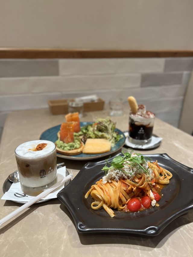 。 This time I went to this cafe in ExxonMobil for dinner with my friends While the environment is comfortable wood is texture super like ❤️ The seats are comfortable😌 If you want to enjoy a cup of coffee during tea time There is a place at the door to sit and chill 。 There are many kinds of food. We ordered this time... Avocado Smoked Salmon Hot Cake $88 Spicy Tomato Crab Pasta $88 Caramel Crispy Fresh Milk Coffee $45 Tiramisu Coffee $52 Of course, there is no shortage of dessert soufflé! Sea Salt Caramel Soufflé $128 。 The whole dinner was a pleasure to eat and tasted good I personally think the spicy tomato crabmeat pasta is a bit too spicy I have to keep drinking water 😂 。 As for the avocado smoked salmon hot pancakes it was excellent and amazing! The avocado🥑 with lemon juice is sour and appetizing There is also salad as a side dish and hot biscuits as a base quite tasty 😋 。 The most important thing is the main character Soufflé I wanted to try figs but unfortunately they were sold out I switched to this one! To the end I was actually a bit full however ice cream plus hot biscuits Also some cream really tastes good and importantly is very fluffy! My friend and I both ate deliciously😊 。 🥢PHI Coffee & Pancake (Mobil) 📍Shop 91A, G/F, Mong Kok New Estate, 69-119 Broadway Street, Mong Kok