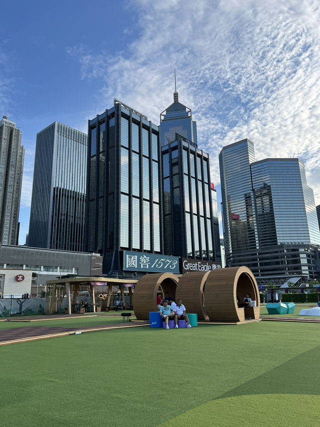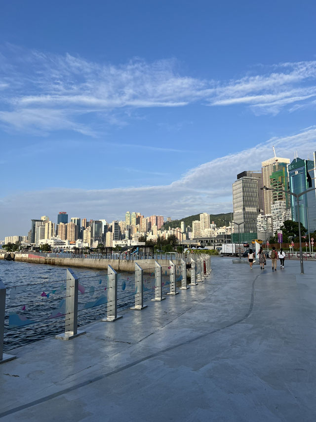 #September2025 🏖️Environment/Facilities: The Wan Chai Promenade, stretching from Tamar Park in Admiralty to the Hong Kong Convention and Exhibition Centre, will open in 2021, adding another waterfront space for residents to enjoy! The Wan Chai Promenade covers approximately 7,800 square meters. Walk from the Convention and Exhibition Centre to the Great Eagle Centre, then cross the footbridge across to the Wan Chai Pier to see the waterfront. A fantastic spot. 💞Recommendation: The promenade is primarily grassy, ​​with numerous sea-view pavilions, artistic seating, and a trendy viewing knoll. It's also pet-friendly, allowing you to take your pet for a stroll. Adjacent to the Wan Chai Promenade, the HarbourChill Seaside Leisure Station, covering nearly 20,000 square feet, is also a great place to relax. 📍Address: Boarding Station: 🕰️Opening Hours: ⭐️Recommendation Rating: 🌟🌟🌟🌟🌟 (5/5)"