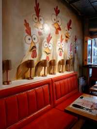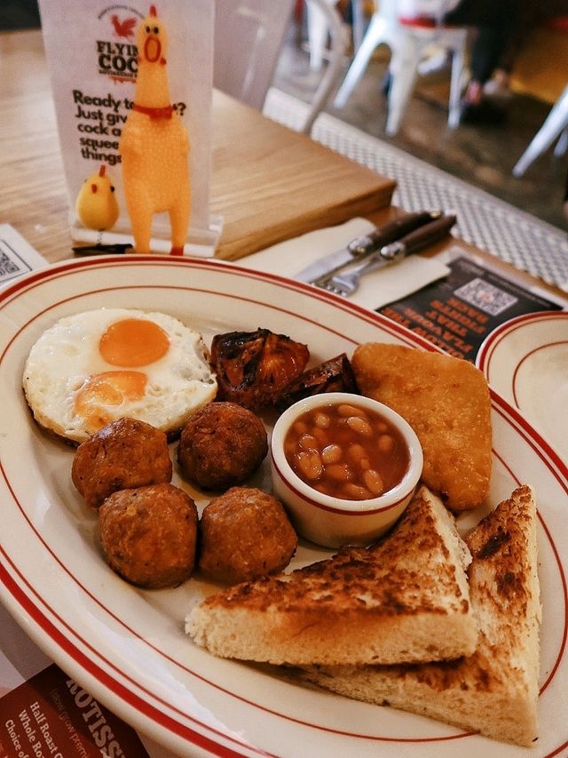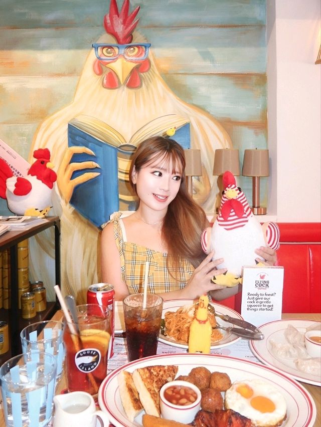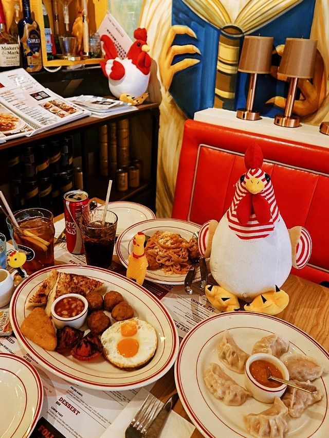 🐔Flying Cock, a playful restaurant in Sai Ying Pun, has a colorful environment, a relaxed and lively atmosphere, and cute chicken dolls and headdresses. @flyingcockhk only selects hormone-free Polish chicken (No GMO), each weighs about 1.5KG ~ Popular recommendation Hk $ 78 value lunch set (including Polish chicken soup / salad + main course), even weekend Brunch is only Hk $ 88, really cheap to fly 🍱BIG COCK BREAKFAST (HK$88) The Dayang egg is smooth and the homemade chicken meatballs are bouncy, matching the slight sourness of the roasted tomatoes, the sweetness of the nutmeg beans and the crispy potato pancakes, while the buttered brioche bread brings a sweet and soft satisfaction 🍝MEATBALL MARINARA PASTA (HK$88) The pasta is draped with sweet and sour and appetizing tomato sauce, which goes perfectly with the equally bouncy chicken meatballs, and the savory flavor of Parmesan cheese enhances the overall flavor 🥟CHICKEN MOMOS (6件) The steamed dumplings are smoky on the outside and tender chicken filled with just the right seasoning. They are dipped in special sour and spicy sauce, which is refreshing and delicious (均需加收10%服务费) 📍Flying Cock - Rotisserie & More G/F, 70 High Street, Sai Ying Pun, Western District (Exit B2 of Sai Ying Pun MTR Station, approx. 4 mins walk) #FlyingCock #PolishRoastChicken #SaiYingPunFood #CheapLunch #AfterWorkDinner #ChickenWingsAll-You-Can-Eat #HKFoodBlogger #IGReelsHK #Sai Ying Pun Shop #Sai Ying Pun Restaurant #Sai Ying Pun Food