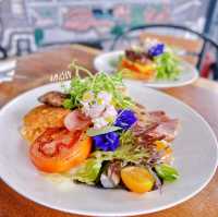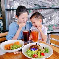 I took my pseudo-Korean boy to Kwun Tong waterfront when I had nothing to do on holiday! The environment here is beautiful, and there are some restaurants. I got this La Serre❤️ There are many all day breakfast options here, it's really suitable to enjoy an afternoon on holiday🤩 Portobello Mushroom Hash Browns w/ Cheddar Cheese Tomato & Avocado The brown mushrooms are very juicy, super large, and layered with tomatoes, cheese, avocado, like eating a burger😆 The brunch here is very beautiful, and there are a few edible flowers to decorate, whispering to you, edible flowers are delicious🤩 LaSerre Breaklast Portobello Mushroom, Bacon, Sausaee, Gammon Ham, Scramble Egg Dad ordered this, the portion is super strong, Dad got up late, did not eat breakfast, can not eat all, a piece of Kinmen ham strong and thick, and scrambled eggs, potato pancakes, fortunately there are pseudo-Korean help to eat Linguine w/ Shrimp in Tomato Sauce This mainly pseudo-Korean eat, taste very good, shrimp is also very large boy very fresh, pseudo-Korean themselves and grandmother share, grandmother said great! Fruit tea & Americano Drinks I ordered a tea and a coffee, their two grandmothers and grandchildren drink fruit tea, grandmother said it is sugar-free 👍🏻👍🏻 Drink all will not feel guilty 😍 Our black coffee is normal 😋 La Serre Address: Shop 1, G/F, 90 Waterfront Road, Kwun Tong #LocalTour #FamilyGood Places #RestaurantRecommendations