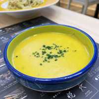 Holiday shopping in Tseung Kwan O shopping mall🛍 The best thing is that several shopping malls are connected together, the whole process has air conditioning indoors, typhoon and rain are not afraid😎 I found a newly opened Western restaurant "C0T" in Tseung Kwan O Center. The restaurant is semi-open design, comfortable environment, good food quality, and very friendly price Ordered 2 Dinner sets, which include soup, salad and tea. 🔹Salad vegetables Caesar salad, fresh and refreshing, with bread crumbs and bacon minced meat, after eating very appetizing, as an appetizer great! 🔹Crabmeat and pumpkin soup Very creamy, with a lot of crab meat very filling, pumpkin is good and fresh and fresh. 🔹American top rib eye steak with barbecue sauce $298 It looks beautiful😍 Ribeye steak chose 50% cooked, the meat is very pink and tender, the surface is a little burnt, rich in oil, sweet and fragrant taste, soft and soft! The side dishes are very rich, with potatoes, radish, cherry tomatoes, corn, eggplant, with mustard sauce and barbecue sauce, even more delicious🤤 🔹Matsutake Crabmeat Cream Pasta $158 There is a big crab claw in the middle of the cream spaghetti, which is very attractive🤩 The crab meat is very fresh and sweet, the pasta is covered with crab meat and crab seeds, the cream sauce is very fragrant and creamy, the pasta is soft and hard, a little bouncy and very juicy😋 🔹Meal ~ Iced Lemon Tea 🔹Strawberry Pancake $108 It's common sense to have dessert after a meal😜 It looks super beautiful ❤️ Great for taking pictures! Strawberry🍓 spread all over the surface, plus smooth cream and crushed peanuts go well together very tasty. The cream is moderately sweet, the strawberries are sweet and sour, the pancakes have three slices and are very soft, with cream and strawberries sandwiched in the middle of each layer. It's really satisfying to eat this dessert🥳 📍C0T (Tseung Kwan O) Shop G87 and G90, G/F, Tseung Kwan O Centre, 9 Donald Street, Tseung Kwan O #c0t #dessert #pancake #steak #spaghetti #dinning #tseungkwano #hkfoodies #foodiegram #foodblogger #hkfood #hkig #hkfoodie #hkfoodblogger #foodlover #hkfoodblog #hkeats #foodpornhk #hkrestaurants #hongkongeats #feasthk #feasthongkong #topcitybites #yum #discoverhongkong #newcafe #newrestaurant