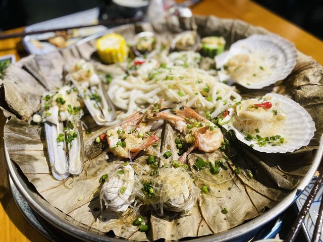 The special all-you-can-eat chicken hotpot comes with a seafood platter that’s super fresh!