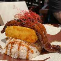 This restaurant is located in the cafe in Tai Po Super City, Hong Kong It's called "Cat Teaちょうぼ" The style is Japanese Showa style This time we tried his eel tamagoyaki rice The eel was very large on top of rice and giant tamagoyaki It feels like a huge piece of eel sushi The check-in is very like👍🏼 Ordered Japanese red wine stewed beef egg bun rice The staff will drizzle the sauce in front of you very fragrant The beef is very tender The eggs are smooth and not old at all. They are delicious Finally, I ordered pudding for dessert The photos are also very good taste is normal not bad just not very stunning The coffee is rich and biased towards nuts, which suits my coffee taste Environmental score: 8.6 points Food Score: 8 points Service Score: 7.8 points Like score: 8.5 points #foodie #local tour