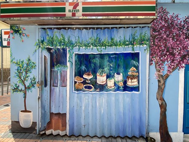The back alley of 7-11 on Decheng Street in Jordan turns out to be a different place🥹The blue-walled cake shop, white windows, and pink peach trees painted on the wall are very bright and eye-catching, adding a lot of vitality to this community🥰 Although this is not a popular check-in hotspot, it is a small blessing to accidentally discover these little surprises in life😇😇😇 #HongKongGoodDestinations #LocalTourism #Check-InGoodDestinations