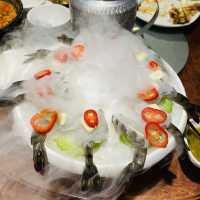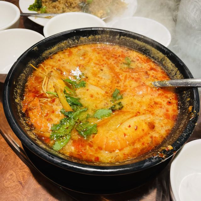 Kowloon City has always been a gathering place for delicious food. This time, the eight of us went to the often packed Wong Jen Jen Thai Restaurant. The tom yum soup tastes just right, not too spicy The raw shrimp sashimi looks attractive, and the meat is fresh and bouncy The curry chicken with French bread, the bread absorbs all the curry sauce is very good, I personally think it tastes better and healthier than with garlic bread 😊 The only thing I can't eat spicy is that I think the lettuce wrap and fried rice are too spicy #Thai Cuisine #KowloonCityFood #food